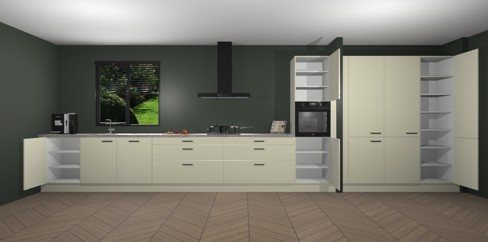 Een stijlvolle en praktische keuken als deze mag gezien worden. Dankzij de prachtige matte afwerking wordt de keuken gemakkelijk het middelpunt van uw huis - hij ziet er geweldig uit onder allerlei lichtomstandigheden, van dag tot nacht!