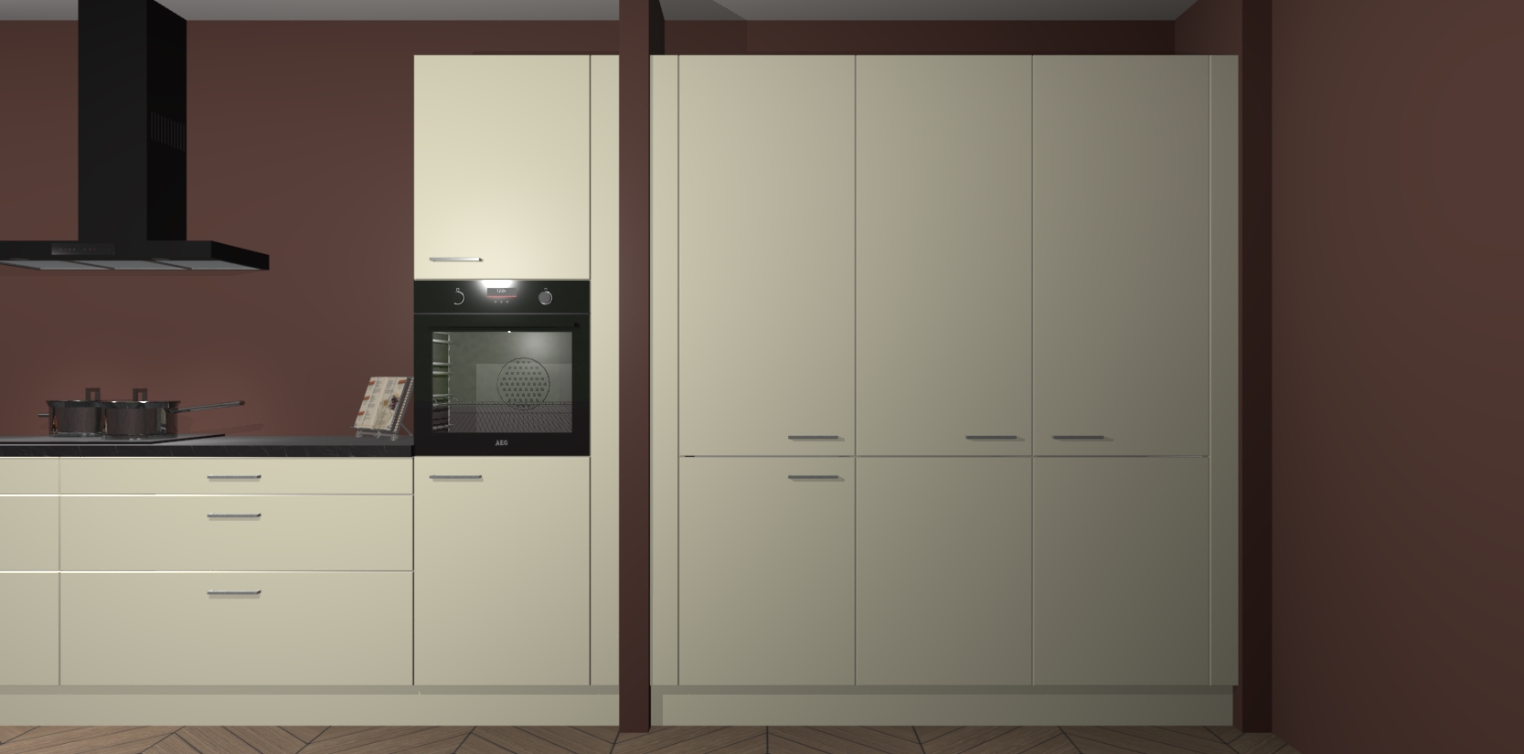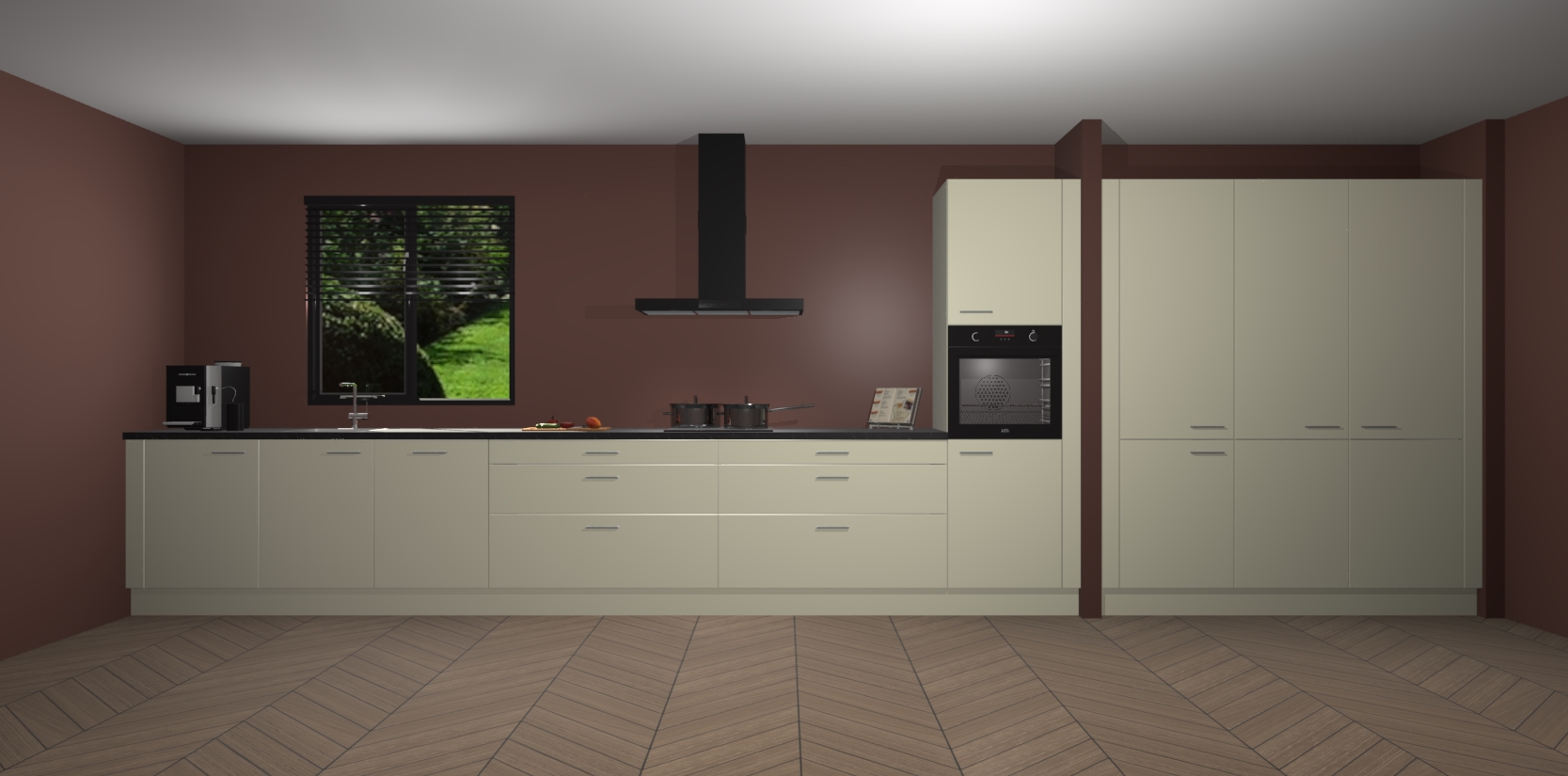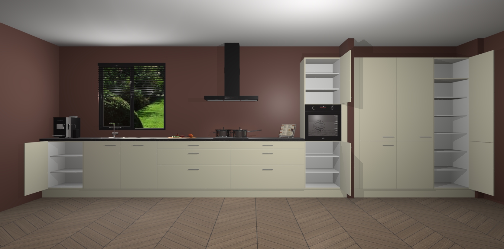 Een stijlvolle en praktische keuken als deze mag gezien worden. Dankzij de prachtige matte afwerking wordt de keuken gemakkelijk het middelpunt van uw huis - hij ziet er geweldig uit onder allerlei lichtomstandigheden, van dag tot nacht!