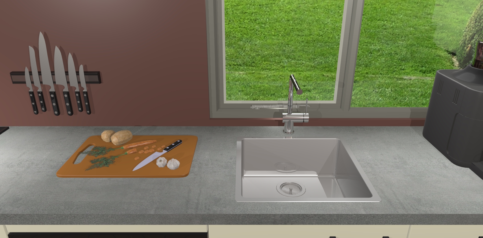 - De spoelbak is nog niet in gevreesd. Dit dient tijdens het werk gedaan te worden