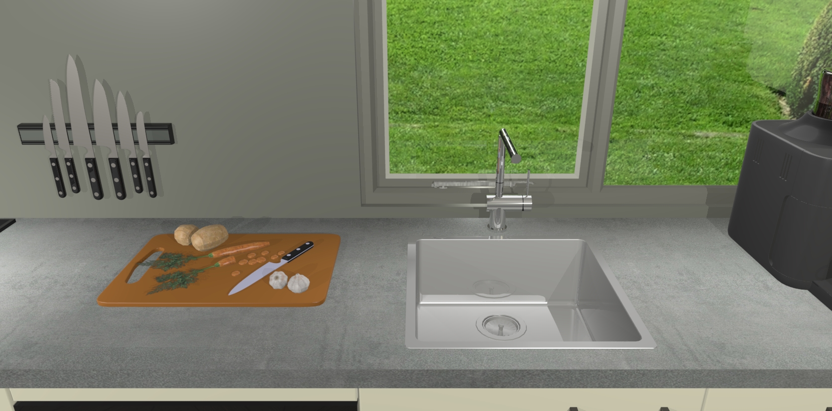 - De spoelbak is nog niet in gevreesd. Dit dient tijdens het werk gedaan te worden
