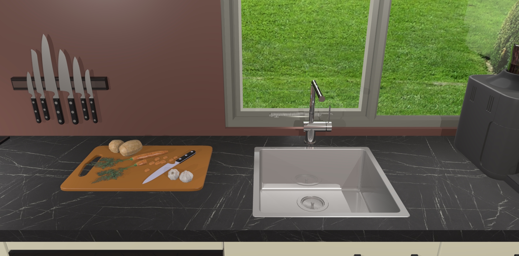 - De spoelbak is nog niet in gevreesd. Dit dient tijdens het werk gedaan te worden