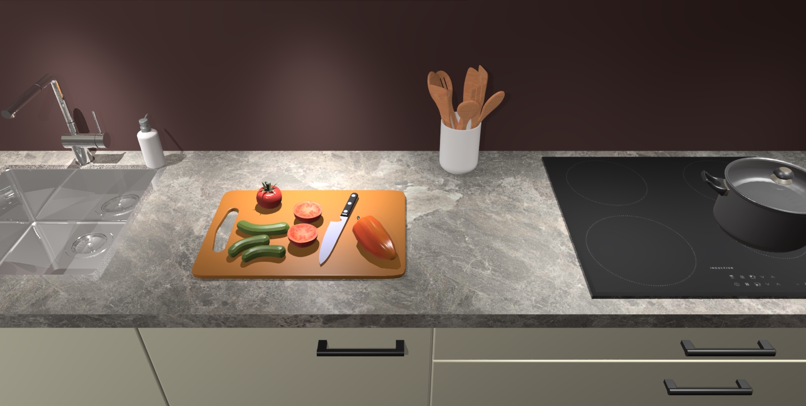 - Uitsparing van kookplaat, spoelbak en kraan dient u zelf te verzorgen.