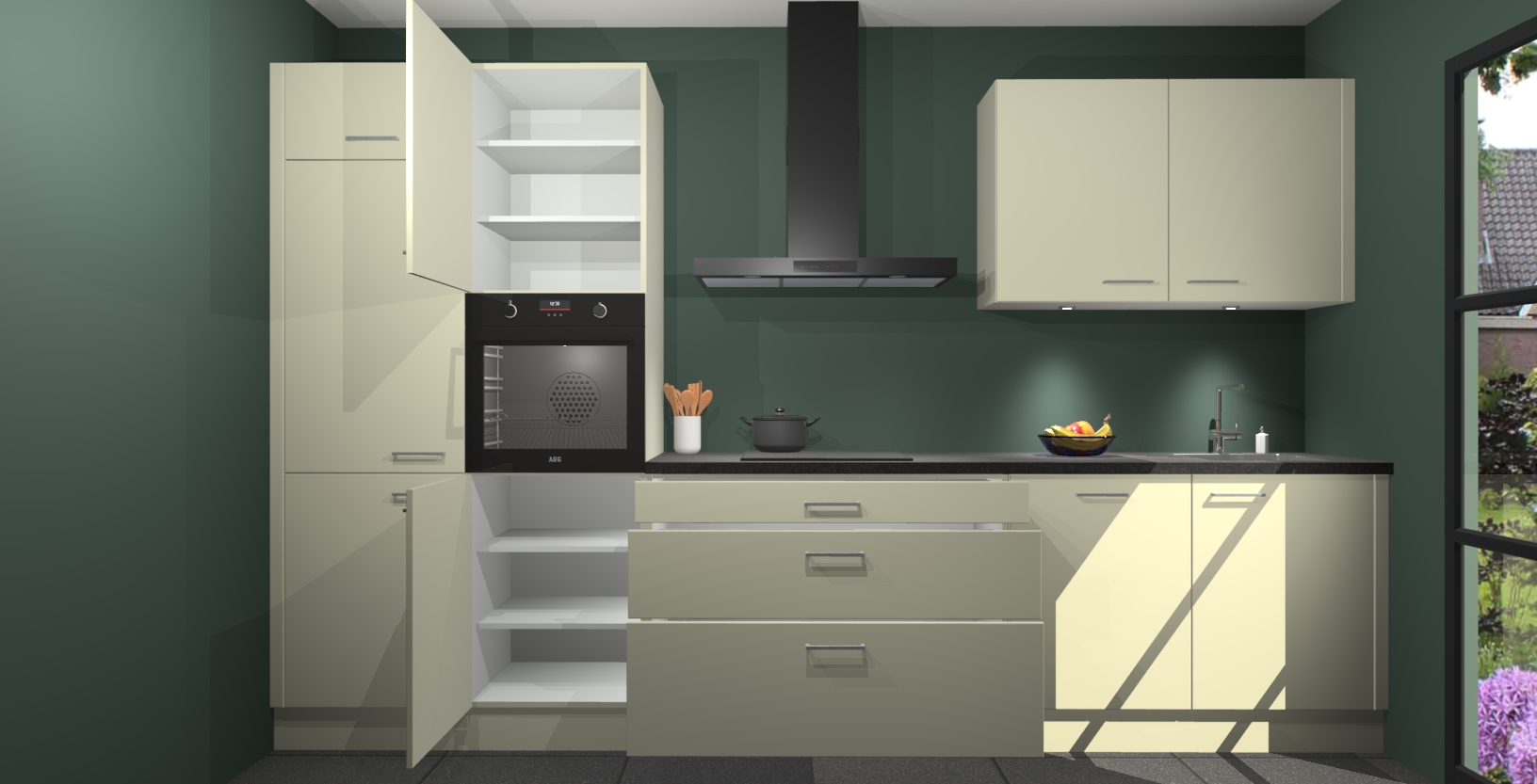 Bovendien is er veel opbergruimte met deze pracht keuken, zodat u ervoor kunt zorgen dat uw kasten en lades altijd georganiseerd zijn - iets wat iedereen waardeert in een drukke keuken. Niemand houdt van een lawaaierige keuken als u de deuren opent en sluit; dankzij de soft close technologie gaat het openen en sluiten van de deuren geruisloos! Bovendien krijgt u de levering binnen 7 weken - hoe geweldig is dat?