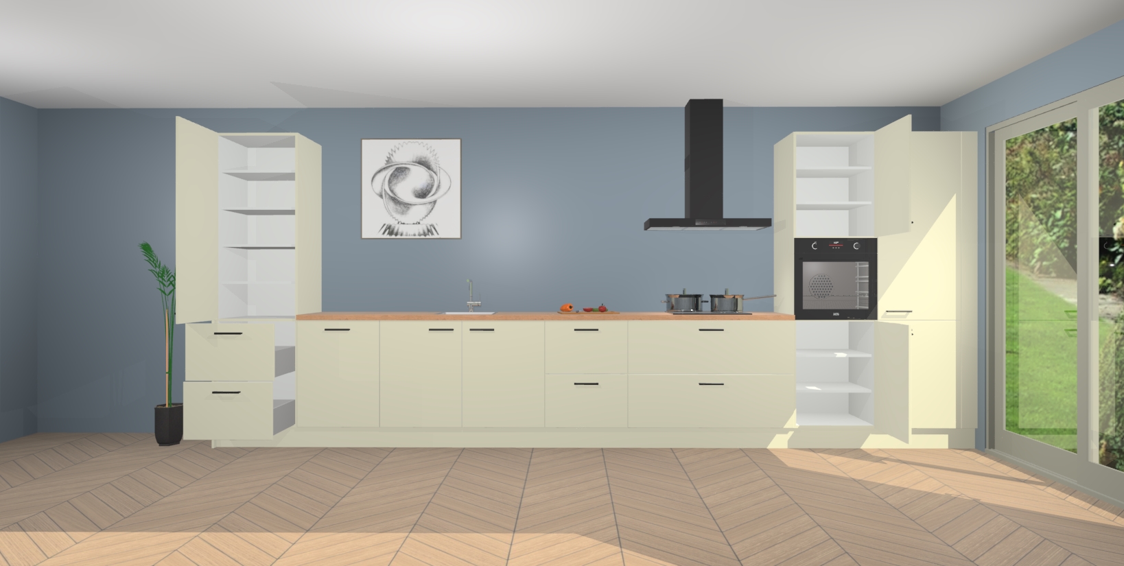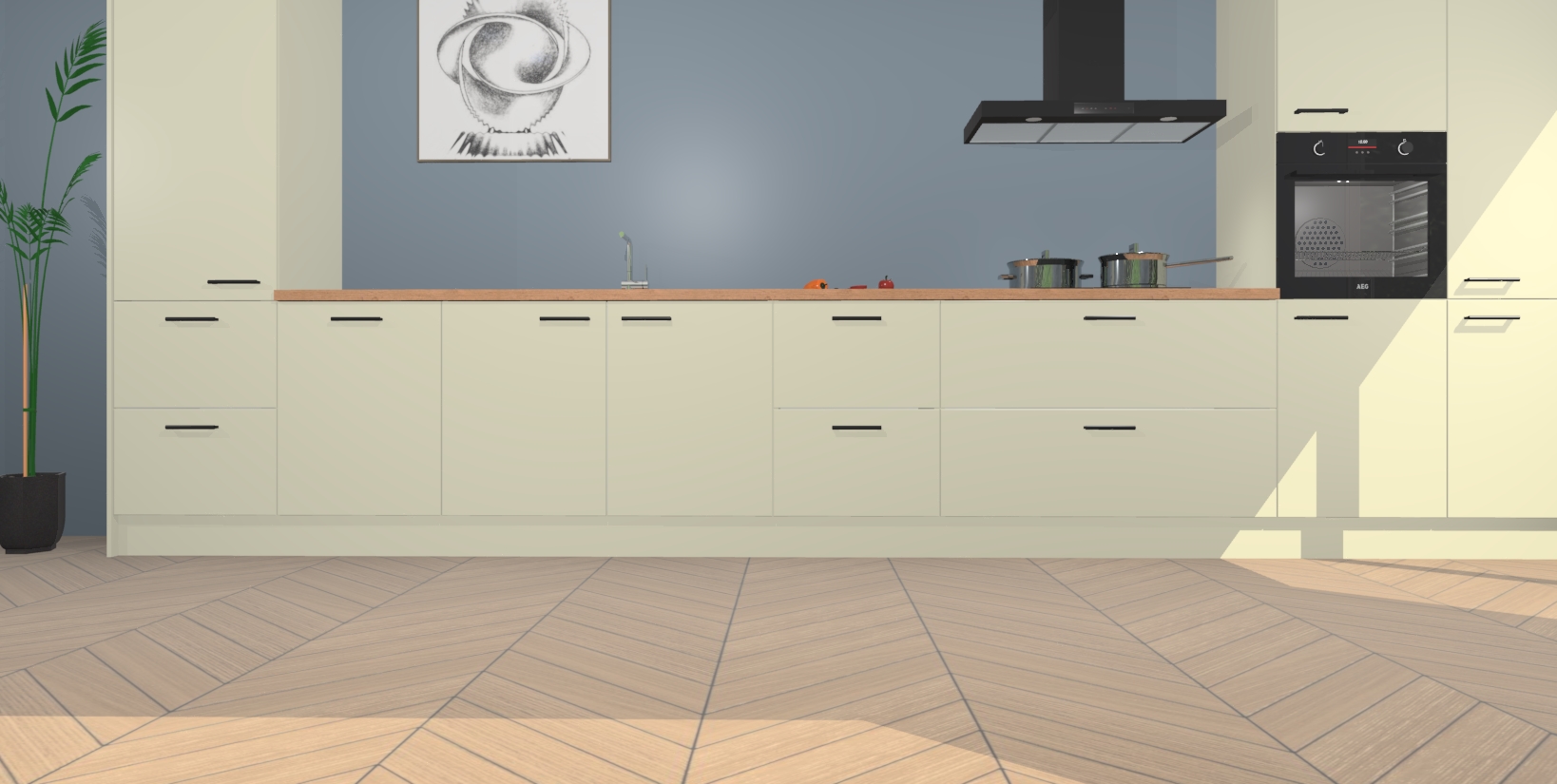 Inclusief plinten, stelpoten en werkblad