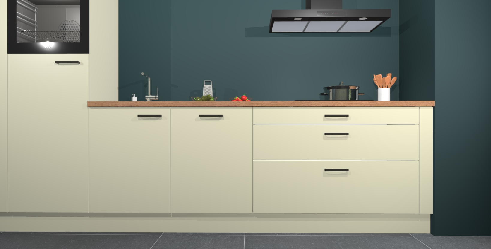 Inclusief plinten, stelpoten en werkblad