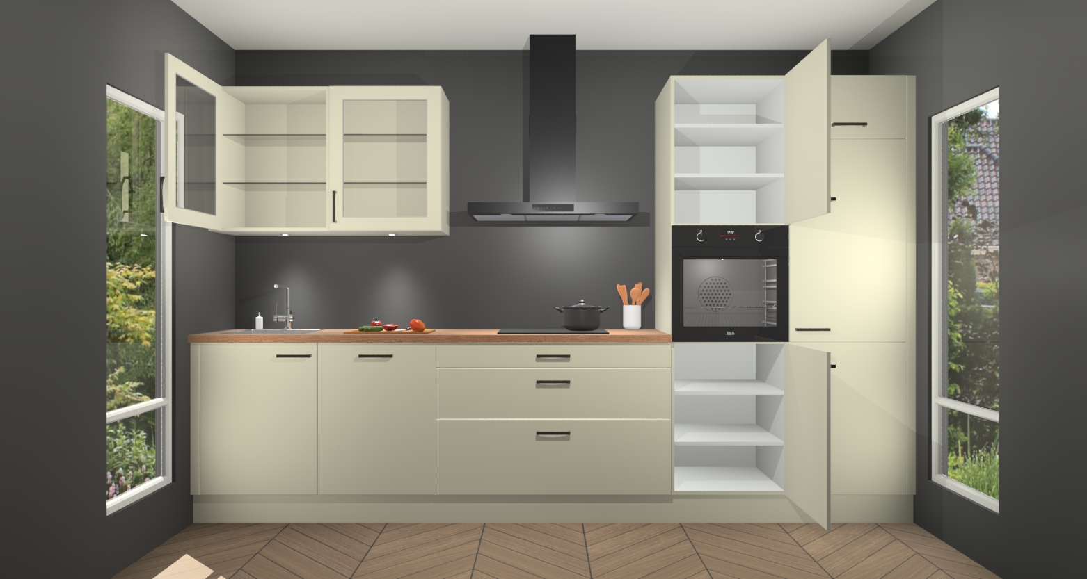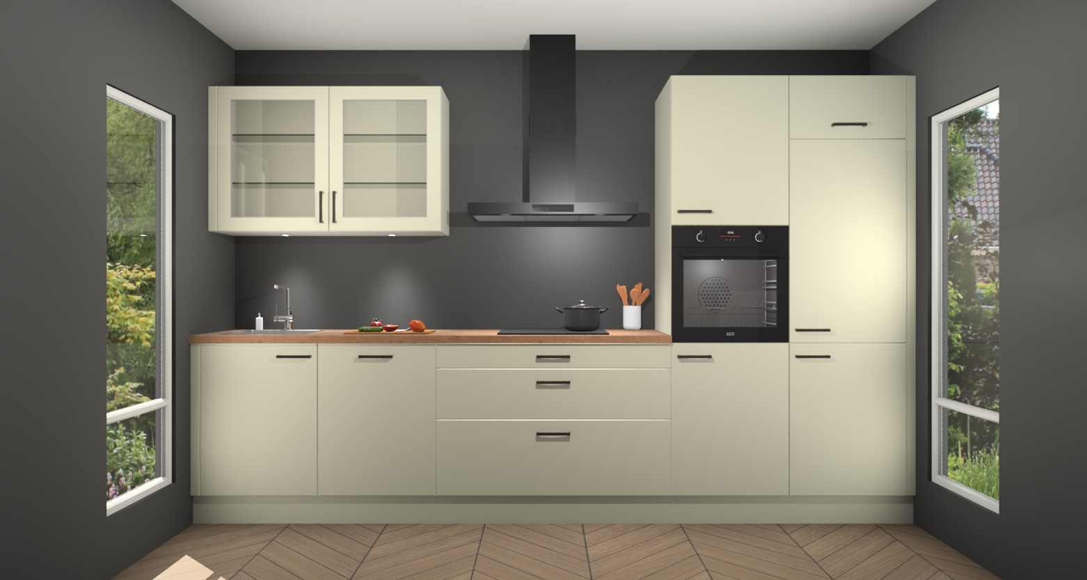 De magnolia keuken Cairo is de perfecte mix van modern en tijdloos design. Met zijn prachtige glazen deuren op de bovenkastjes voegt hij echt iets speciaals en unieks toe aan elke keuken. En met vijf ingebouwde apparaten inbegrepen - een oven, inductiekookplaat, afzuigkap, vaatwasser en koelkast - kunt u deze keuken echt helemaal van uzelf maken! U kunt na bestelling ook upgraden naar AEG voor een nog hogere kwaliteitservaring.