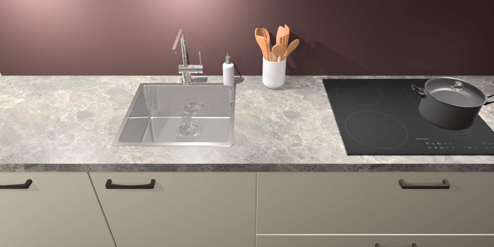 - Uitsparing van kookplaat, spoelbak en kraan dient u zelf te verzorgen.