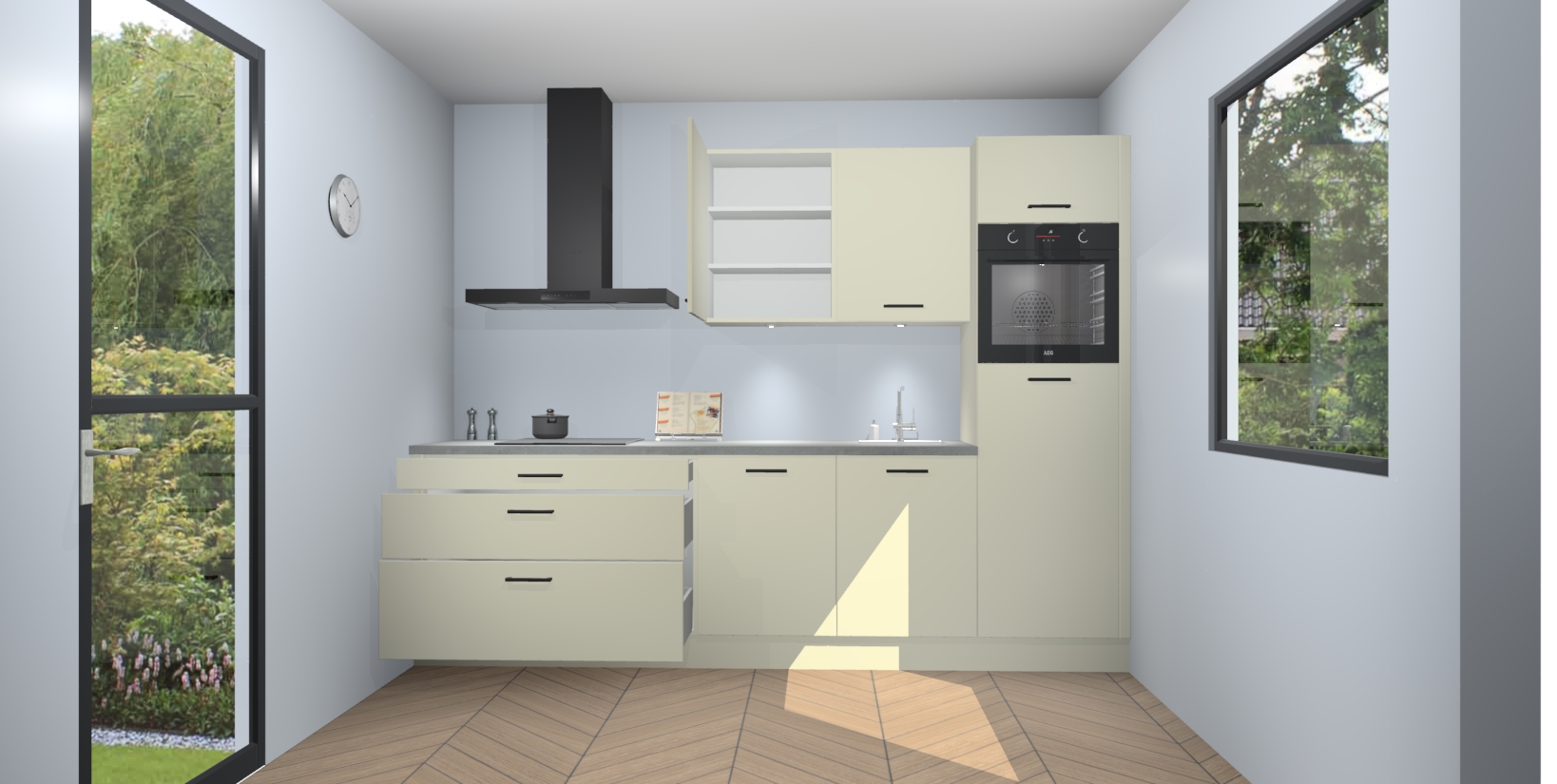 Inclusief plinten, stelpoten en werkblad