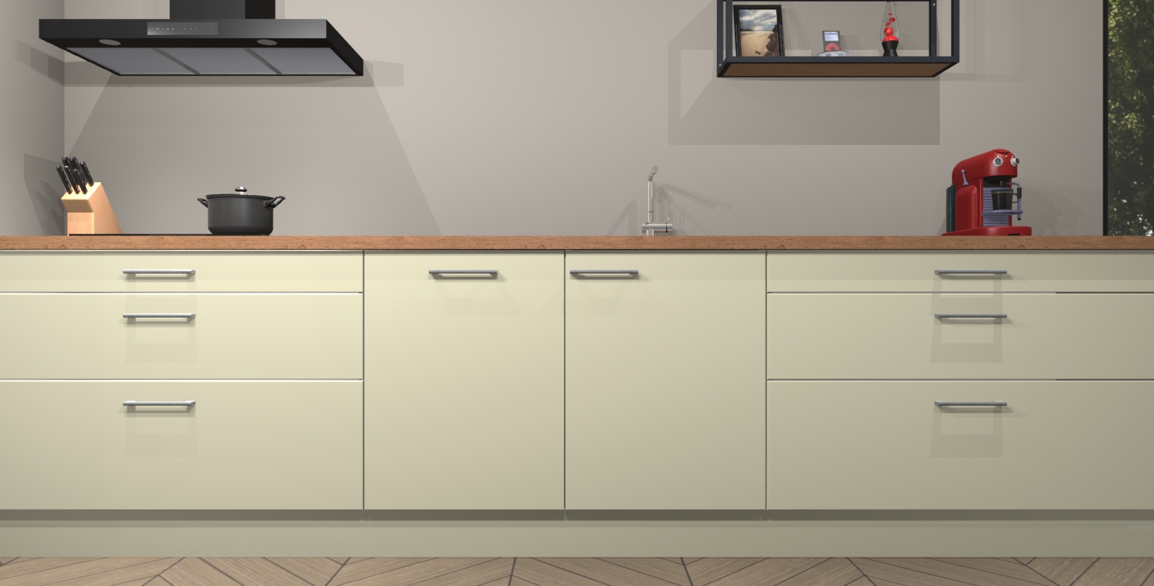 De softclose deuren openen en sluiten is ook heel eenvoudig - geniet van een moeiteloze keukenervaring, zelfs als er kinderen rondlopen. Voor extra gemak bij het plaatsen van uw bestelling bieden we ook een upgrade naar een kookplaat met geïntegreerde afzuiging.