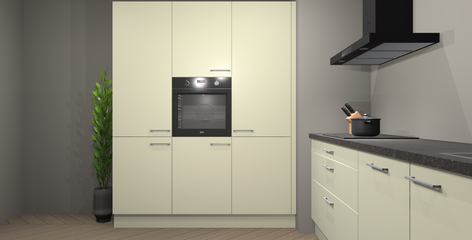 De softclose deuren openen en sluiten is ook heel eenvoudig - geniet van een moeiteloze keukenervaring, zelfs als er kinderen rondlopen. Voor extra gemak bij het plaatsen van uw bestelling bieden we ook een upgrade naar een kookplaat met geïntegreerde afzuiging.