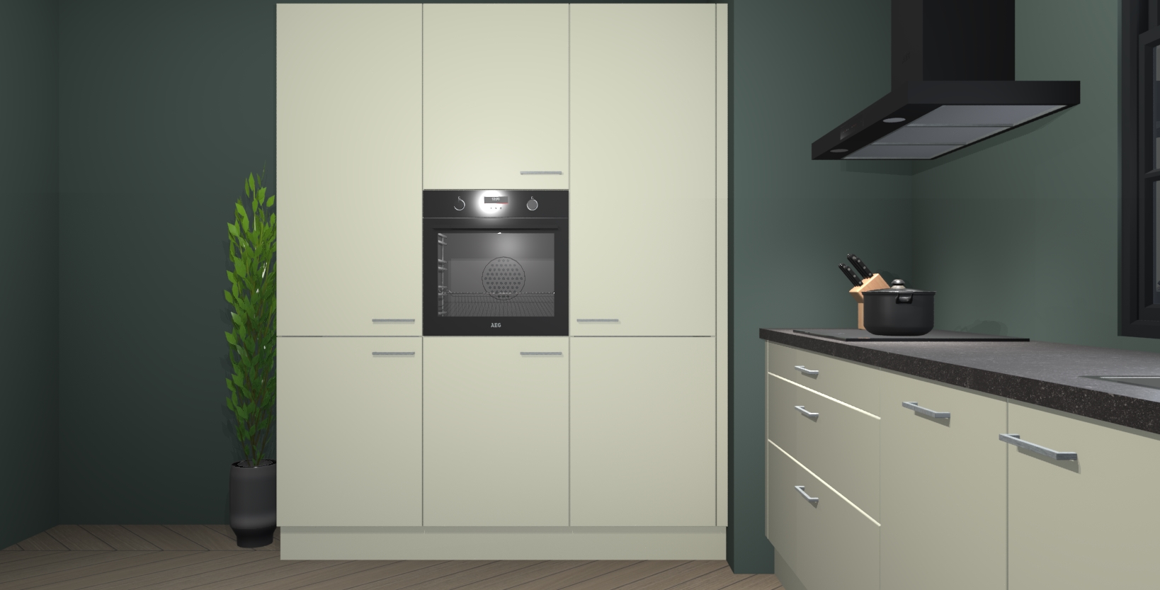 De softclose deuren openen en sluiten is ook heel eenvoudig - geniet van een moeiteloze keukenervaring, zelfs als er kinderen rondlopen. Voor extra gemak bij het plaatsen van uw bestelling bieden we ook een upgrade naar een kookplaat met geïntegreerde afzuiging.