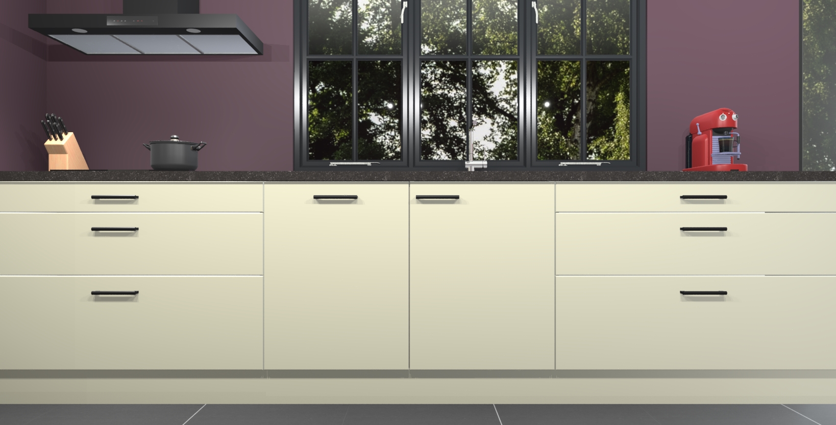 De softclose deuren openen en sluiten is ook heel eenvoudig - geniet van een moeiteloze keukenervaring, zelfs als er kinderen rondlopen. Voor extra gemak bij het plaatsen van uw bestelling bieden we ook een upgrade naar een kookplaat met geïntegreerde afzuiging.