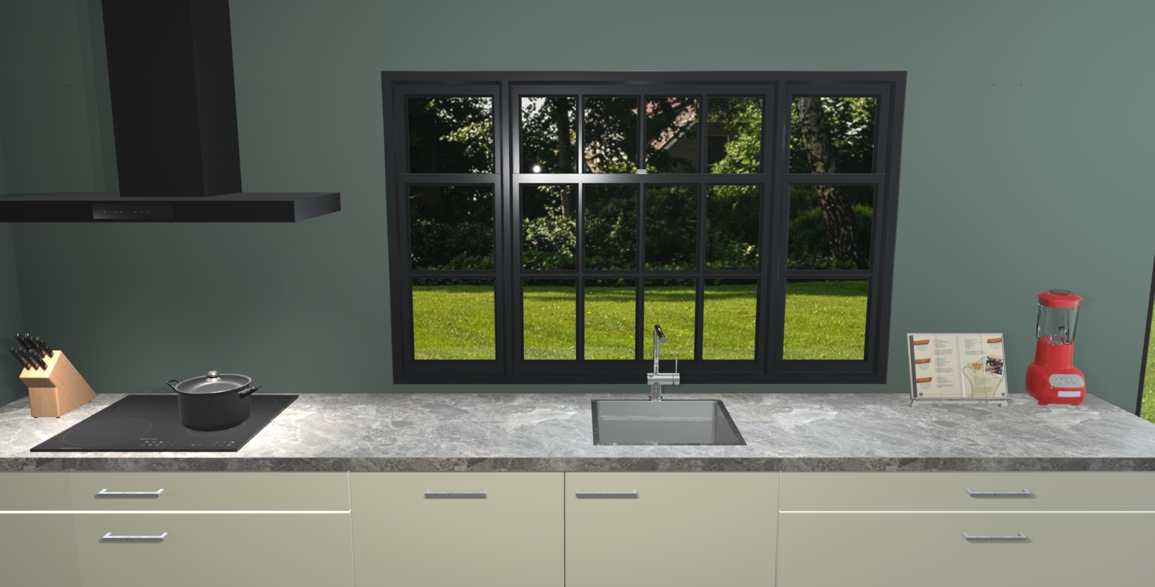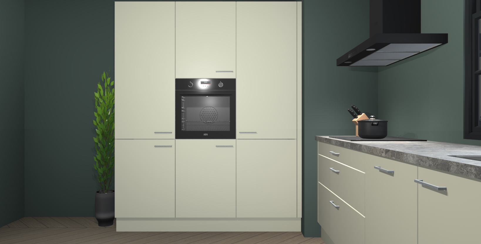 De softclose deuren openen en sluiten is ook heel eenvoudig - geniet van een moeiteloze keukenervaring, zelfs als er kinderen rondlopen. Voor extra gemak bij het plaatsen van uw bestelling bieden we ook een upgrade naar een kookplaat met geïntegreerde afzuiging.
