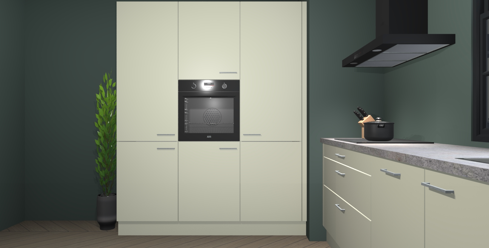 De softclose deuren openen en sluiten is ook heel eenvoudig - geniet van een moeiteloze keukenervaring, zelfs als er kinderen rondlopen. Voor extra gemak bij het plaatsen van uw bestelling bieden we ook een upgrade naar een kookplaat met geïntegreerde afzuiging.