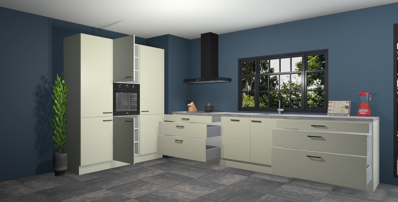 Inclusief plinten, stelpoten en werkblad