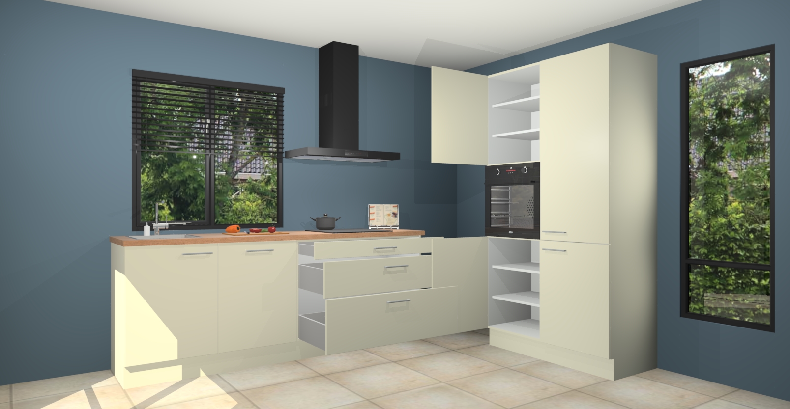 De setting is compleet gemaakt door de vijf inbouwapparaten: wanneer u gaat bestellen kunt u upgraden naar AEG-apparaten als oven, inductieplaat, afzuigkap, vaatwasser en koelkast. Kiest u voor onze Magnolia keuken Monaco, dan weet u zeker dat u te maken heeft met Duitse kwaliteit. Bovendien is er altijd sprake van een lage prijs en profiteren we aantrekkelijk leveringstermijn: die bedraagt slechts 7 weken ! Om het extra makkelijk te maken worden de keukenkasten reeds voorgemonteerd geleverd.