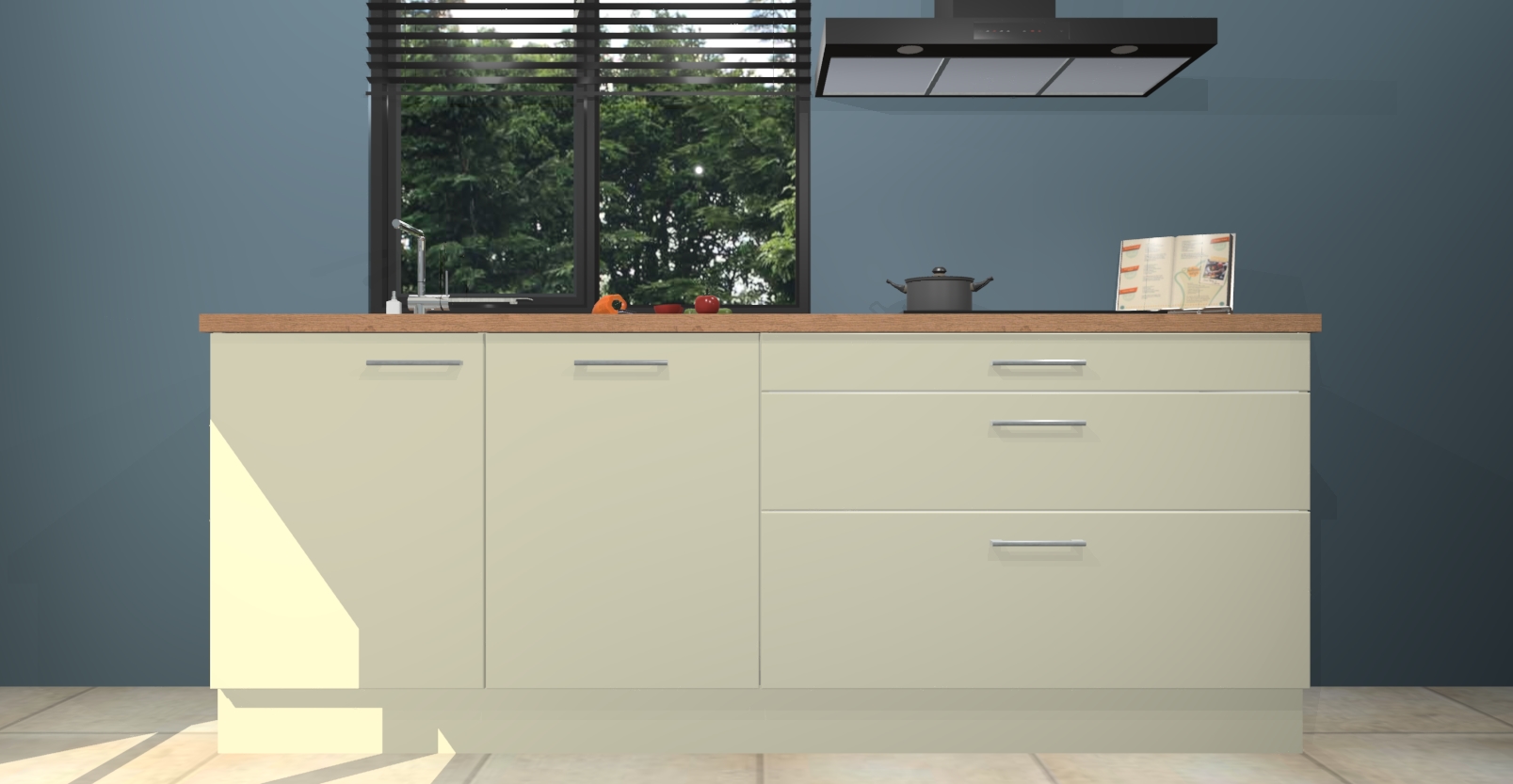 Inclusief plinten, stelpoten en werkblad