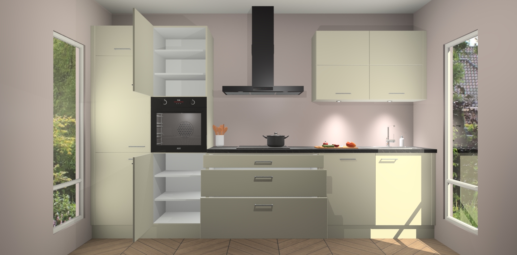 De glanzende afwerking van de deuren is gemaakt met behulp van geavanceerde coatingtechnologie, waardoor schoonmaken na het eten eenvoudig en efficiënt is. Bovendien zijn er geen handgrepen nodig, waardoor deze keuken zowel modern als verfijnd is. Of u nu op zoek bent naar een minimalistische toevoeging aan een hedendaags huis of naar iets stijlvollers en tijdlozers in een traditionele huiselijke omgeving, onze Magnolia Keuken Parijs is een geweldige oplossing.