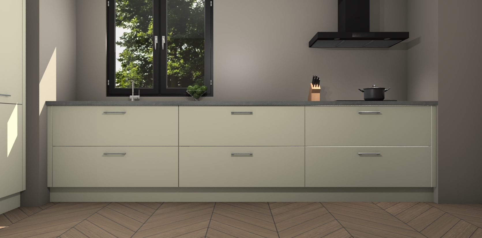 De softclose deuren openen en sluiten is ook heel eenvoudig - geniet van een moeiteloze keukenervaring, zelfs als er kinderen rondlopen. Voor extra gemak bij het plaatsen van uw bestelling bieden we ook een upgrade naar een kookplaat met geïntegreerde afzuiging.