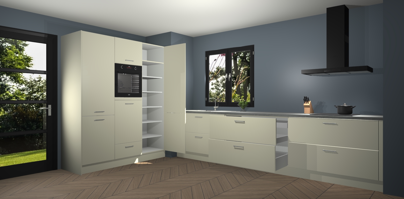 De softclose deuren openen en sluiten is ook heel eenvoudig - geniet van een moeiteloze keukenervaring, zelfs als er kinderen rondlopen. Voor extra gemak bij het plaatsen van uw bestelling bieden we ook een upgrade naar een kookplaat met geïntegreerde afzuiging.