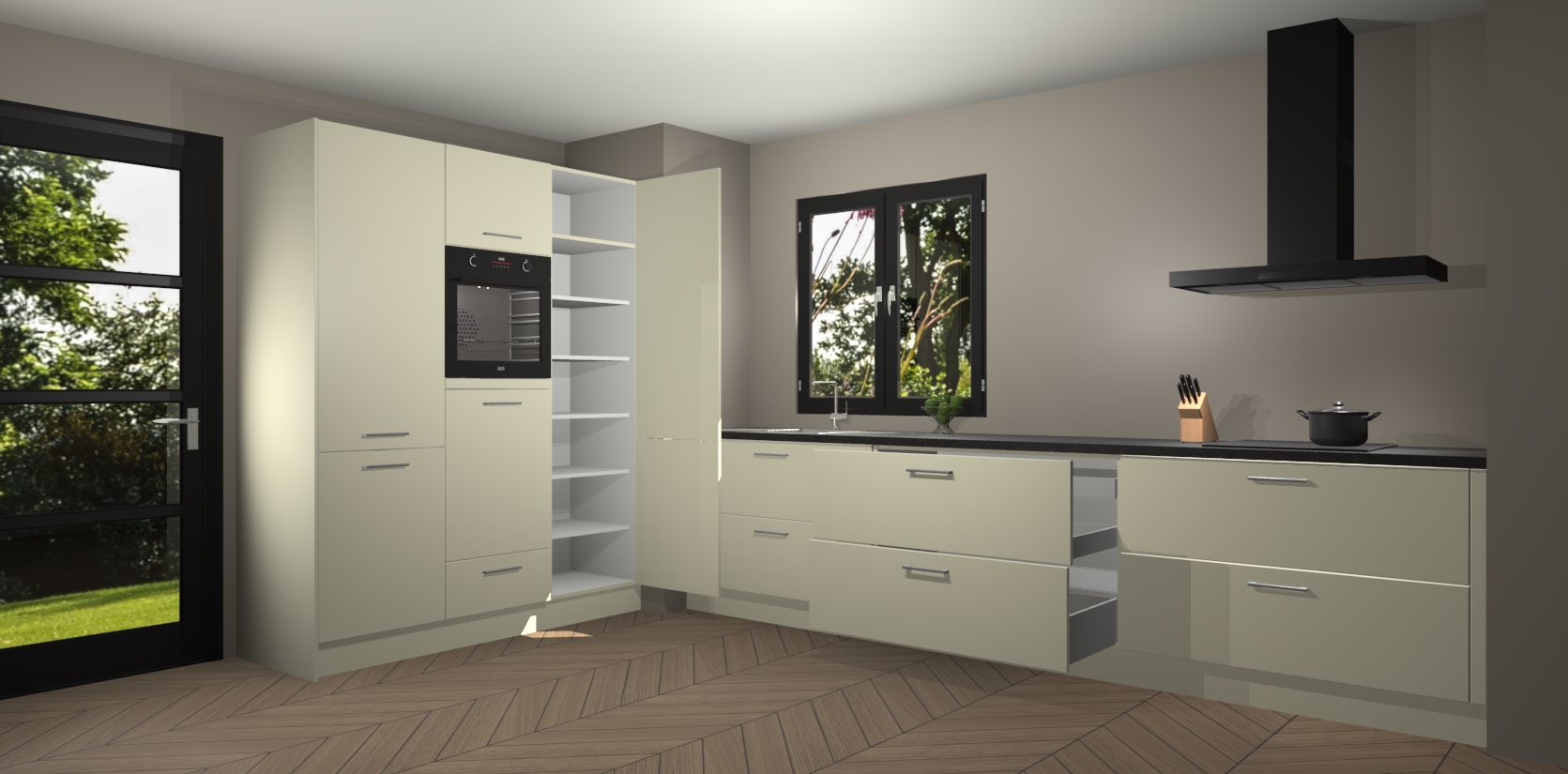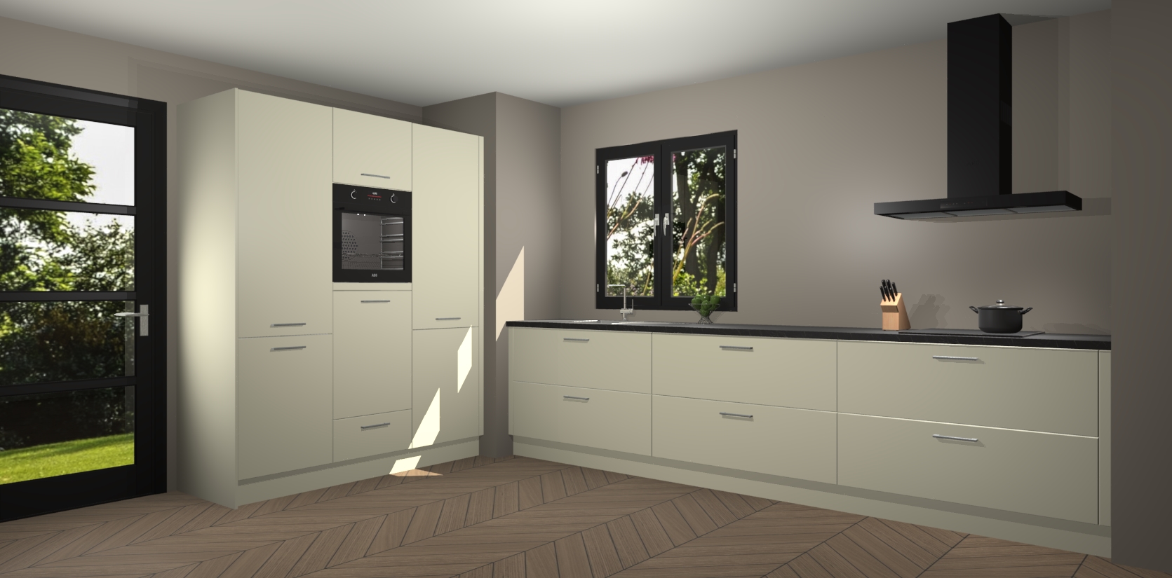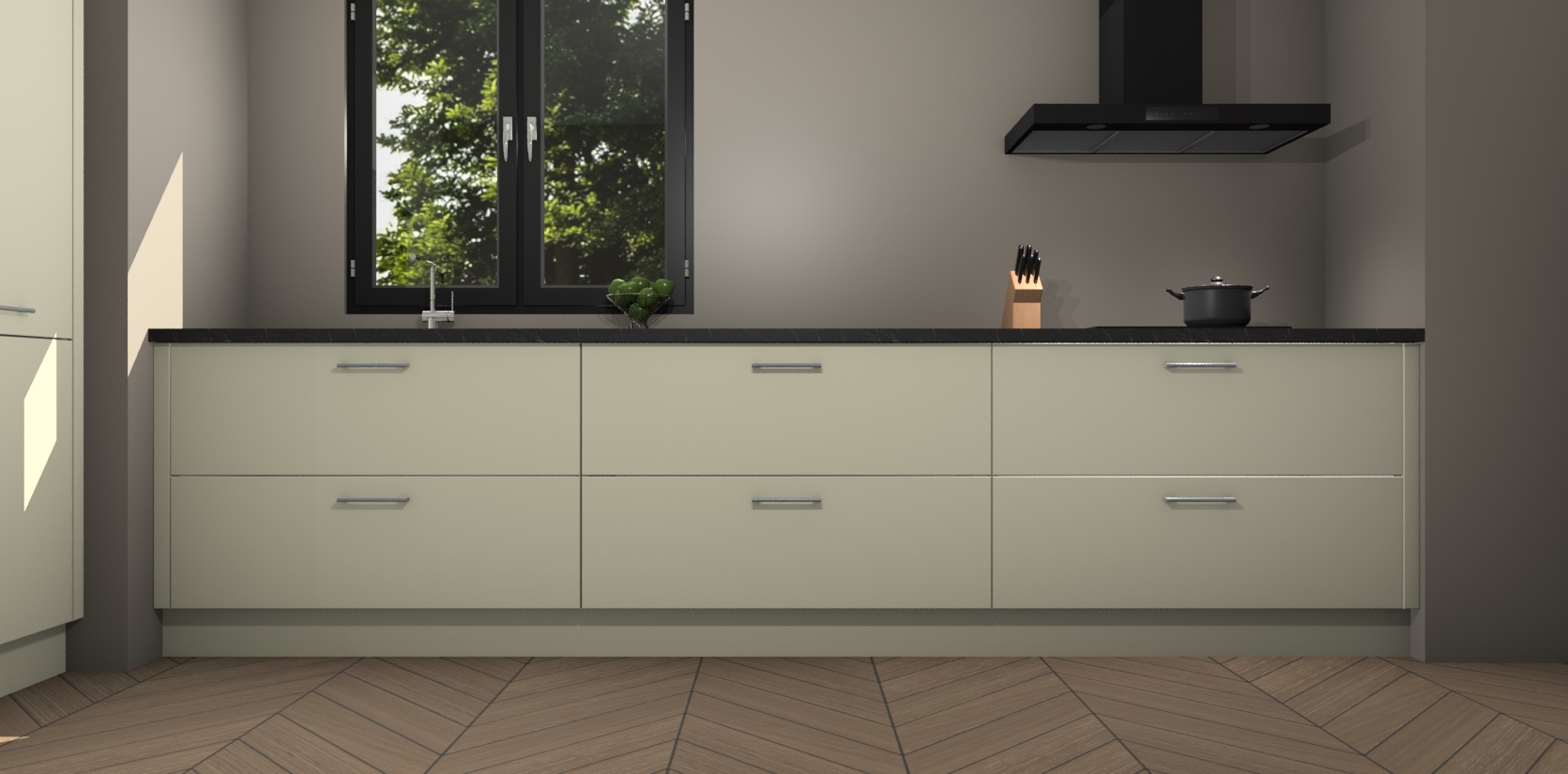 De softclose deuren openen en sluiten is ook heel eenvoudig - geniet van een moeiteloze keukenervaring, zelfs als er kinderen rondlopen. Voor extra gemak bij het plaatsen van uw bestelling bieden we ook een upgrade naar een kookplaat met geïntegreerde afzuiging.