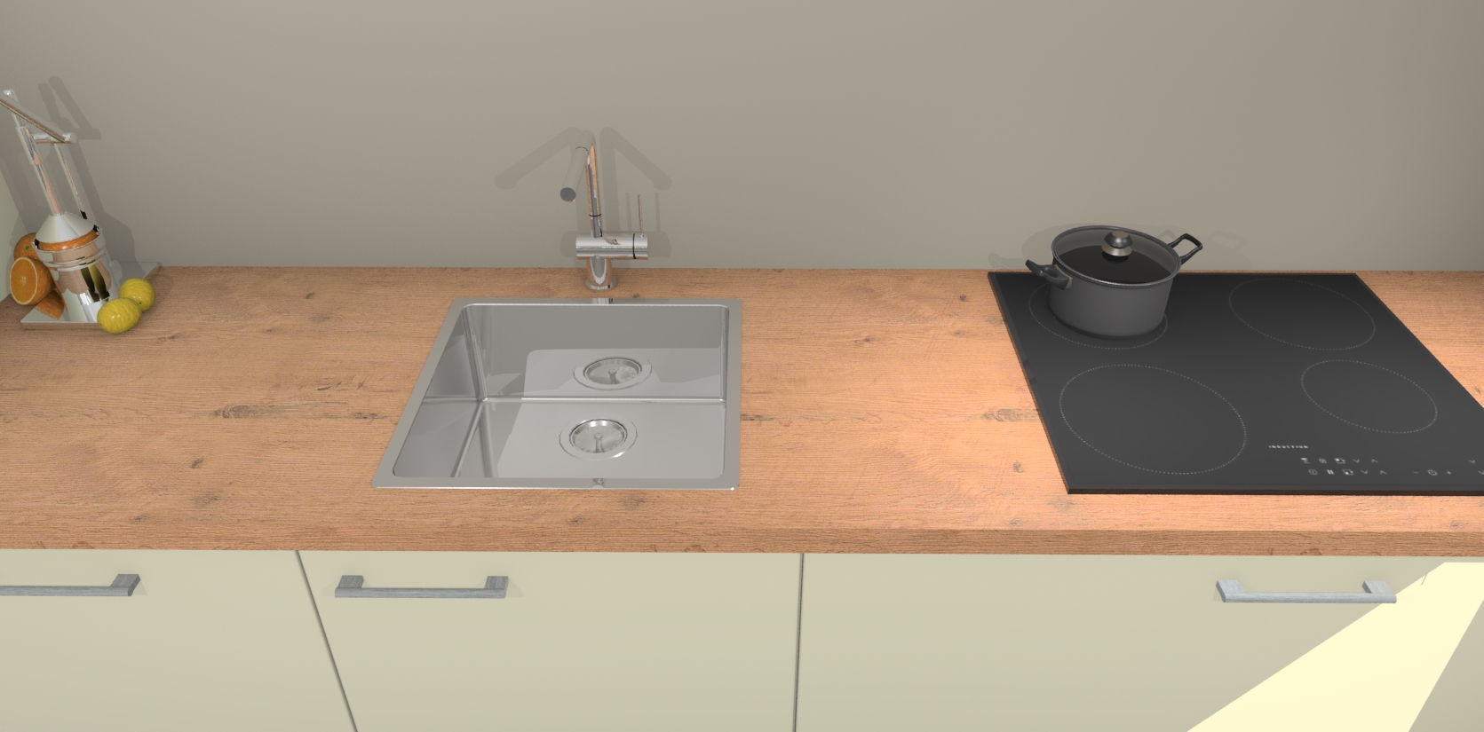 • Uitsparing van kookplaat, spoelbak en kraan dient u zelf te verzorgen.