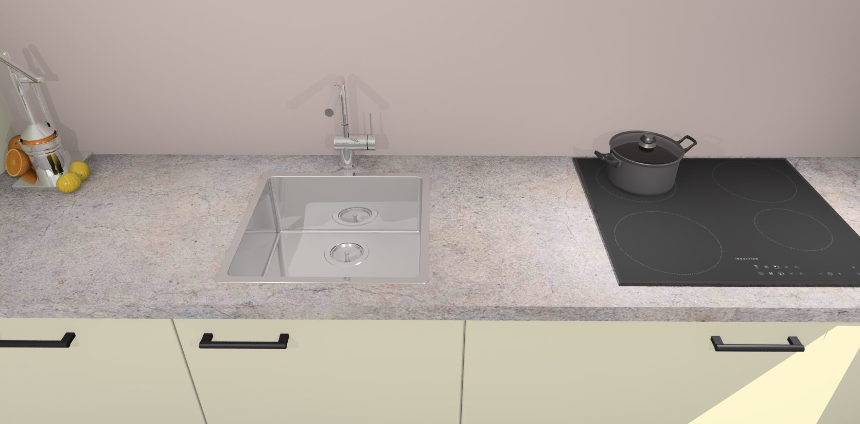 - Uitsparing van kookplaat, spoelbak en kraan dient u zelf te verzorgen.
