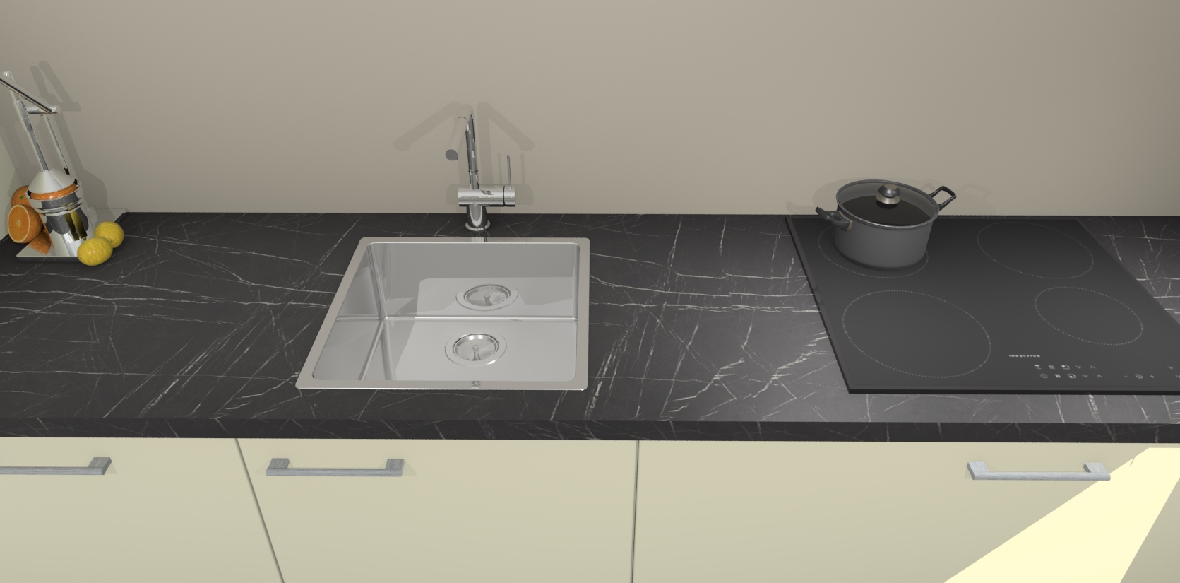 - Uitsparing van kookplaat, spoelbak en kraan dient u zelf te verzorgen.