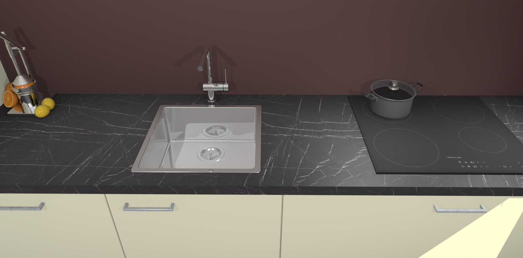 • Uitsparing van kookplaat, spoelbak en kraan dient u zelf te verzorgen.