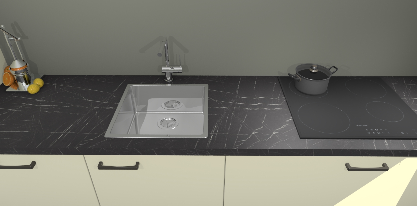 - Uitsparing van kookplaat, spoelbak en kraan dient u zelf te verzorgen.
