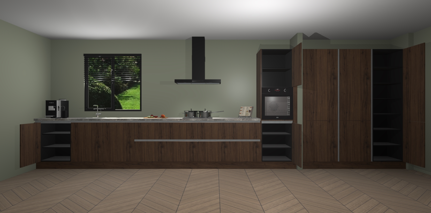 Dankzij de afwerking past de Noten greeploze keuken Angola naadloos in elk huis of appartement. De soft-close deuren geven je extra gemoedsrust, want ze sluiten vanzelf en slaan nooit dicht! En alsof dat nog niet genoeg is, worden deze kasten volledig gemonteerd geleverd, dus maak je geen zorgen over eventuele installatieproblemen.