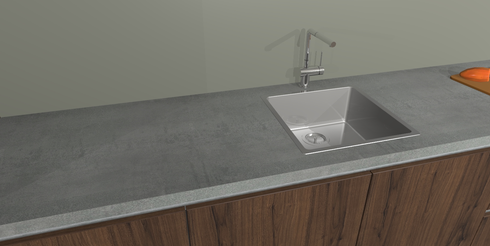 - De spoelbak is nog niet in gevreesd. Dit dient tijdens het werk gedaan te worden