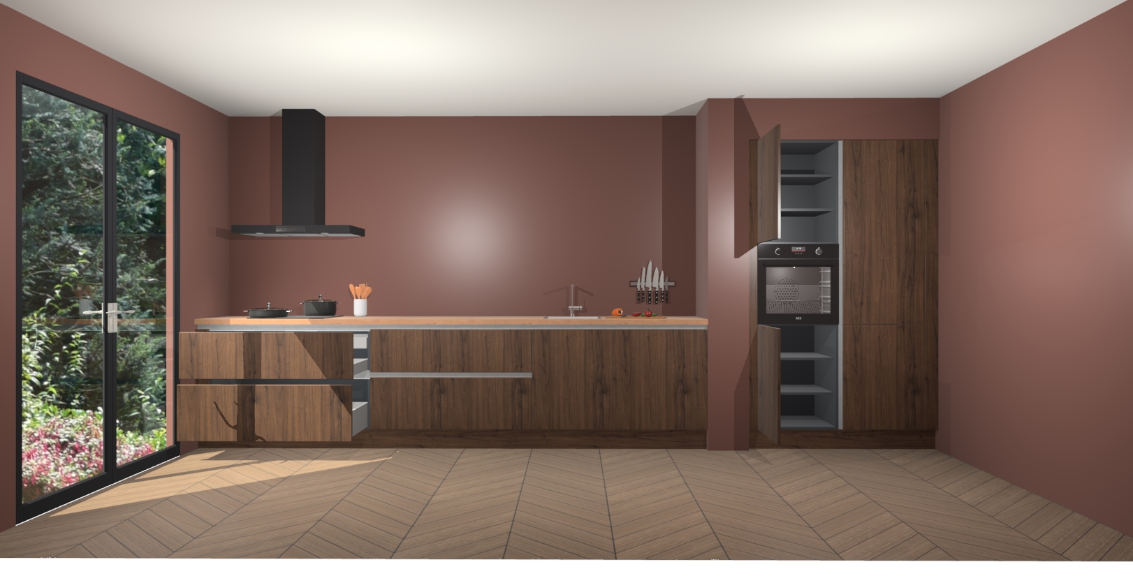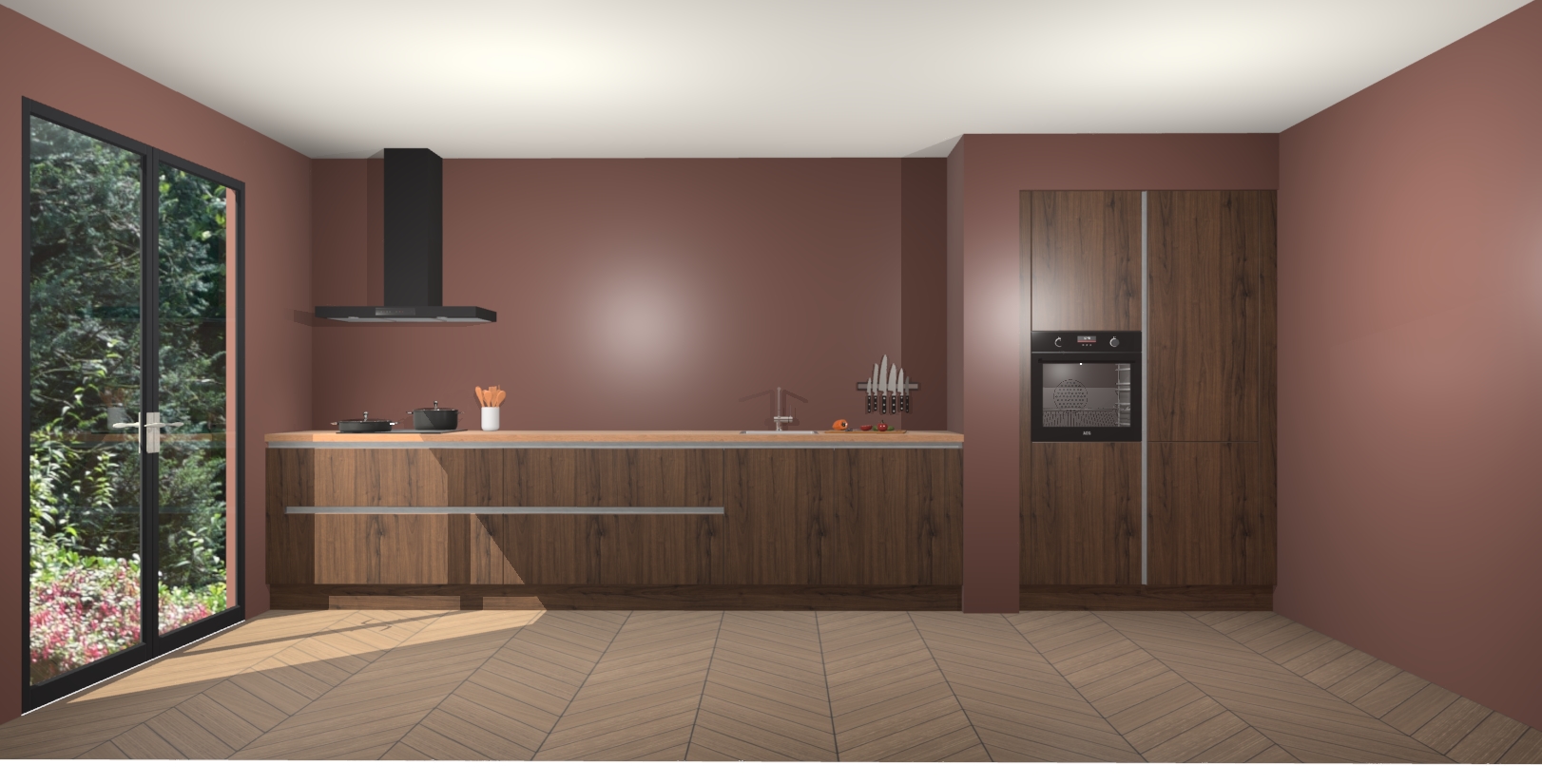 Met de Noten greeploze keuken Calgary Maakt u van uw keuken het pronkstuk van uw huis. Stijlvol en toch praktisch, de nieuwste look voor wie meer waarde en charme aan zijn huis wil toevoegen. Met prachtige handgrepen die zich lenen voor een klassieke stijlbron, zal u niet teleurgesteld zijn in het resultaat. De soft-close deurscharnieren geven een gevoel van luxe omdat ze zachtjes bewegen zonder storende of krakende geluiden te veroorzaken.