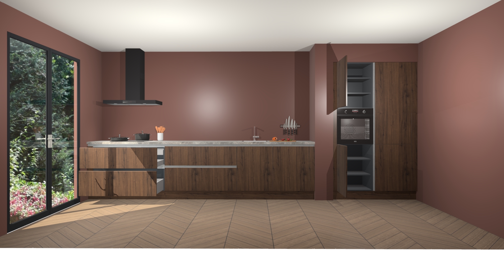 Met de Noten greeploze keuken Calgary Maakt u van uw keuken het pronkstuk van uw huis. Stijlvol en toch praktisch, de nieuwste look voor wie meer waarde en charme aan zijn huis wil toevoegen. Met prachtige handgrepen die zich lenen voor een klassieke stijlbron, zal u niet teleurgesteld zijn in het resultaat. De soft-close deurscharnieren geven een gevoel van luxe omdat ze zachtjes bewegen zonder storende of krakende geluiden te veroorzaken.