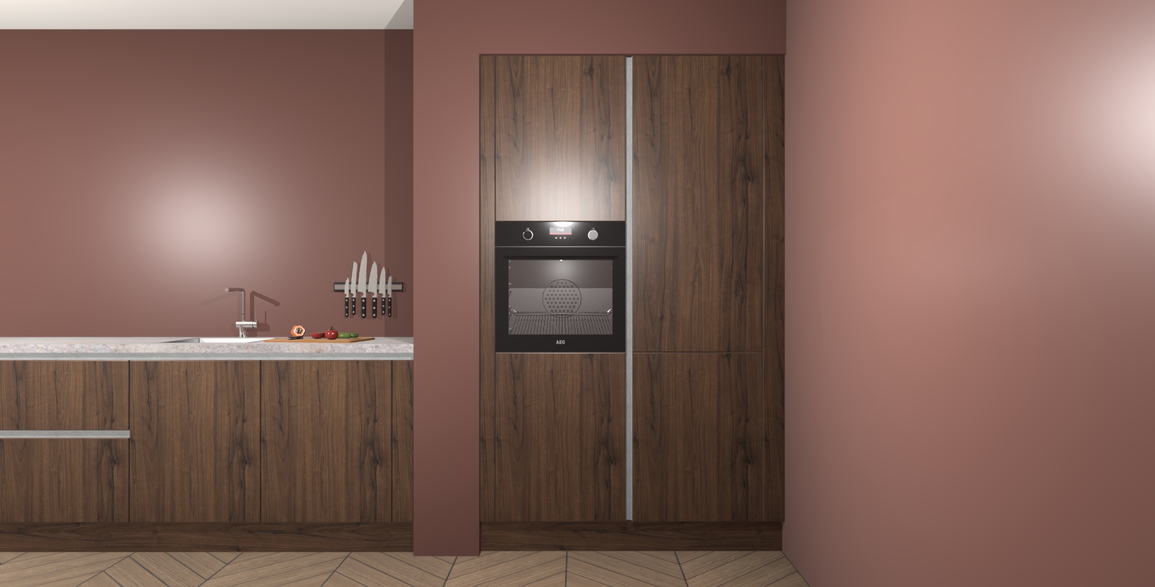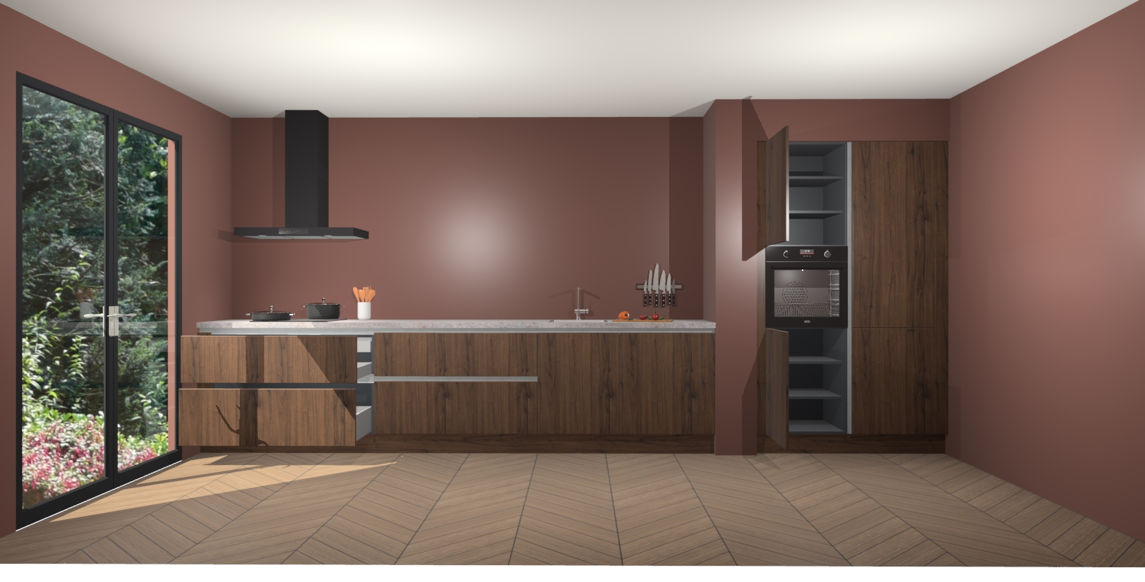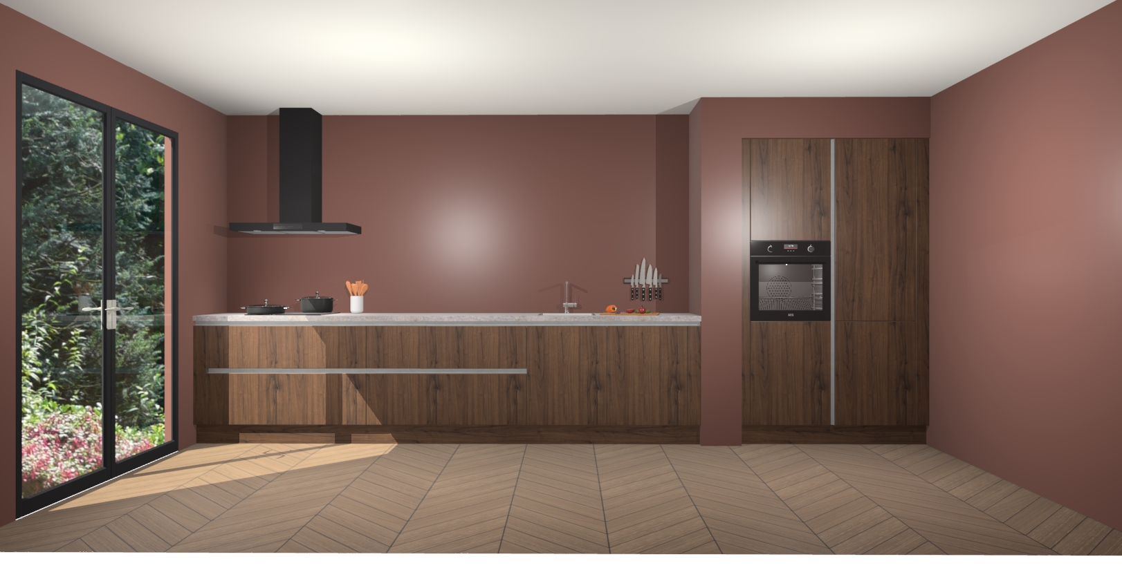 Met de Noten greeploze keuken Calgary Maakt u van uw keuken het pronkstuk van uw huis. Stijlvol en toch praktisch, de nieuwste look voor wie meer waarde en charme aan zijn huis wil toevoegen. Met prachtige handgrepen die zich lenen voor een klassieke stijlbron, zal u niet teleurgesteld zijn in het resultaat. De soft-close deurscharnieren geven een gevoel van luxe omdat ze zachtjes bewegen zonder storende of krakende geluiden te veroorzaken.