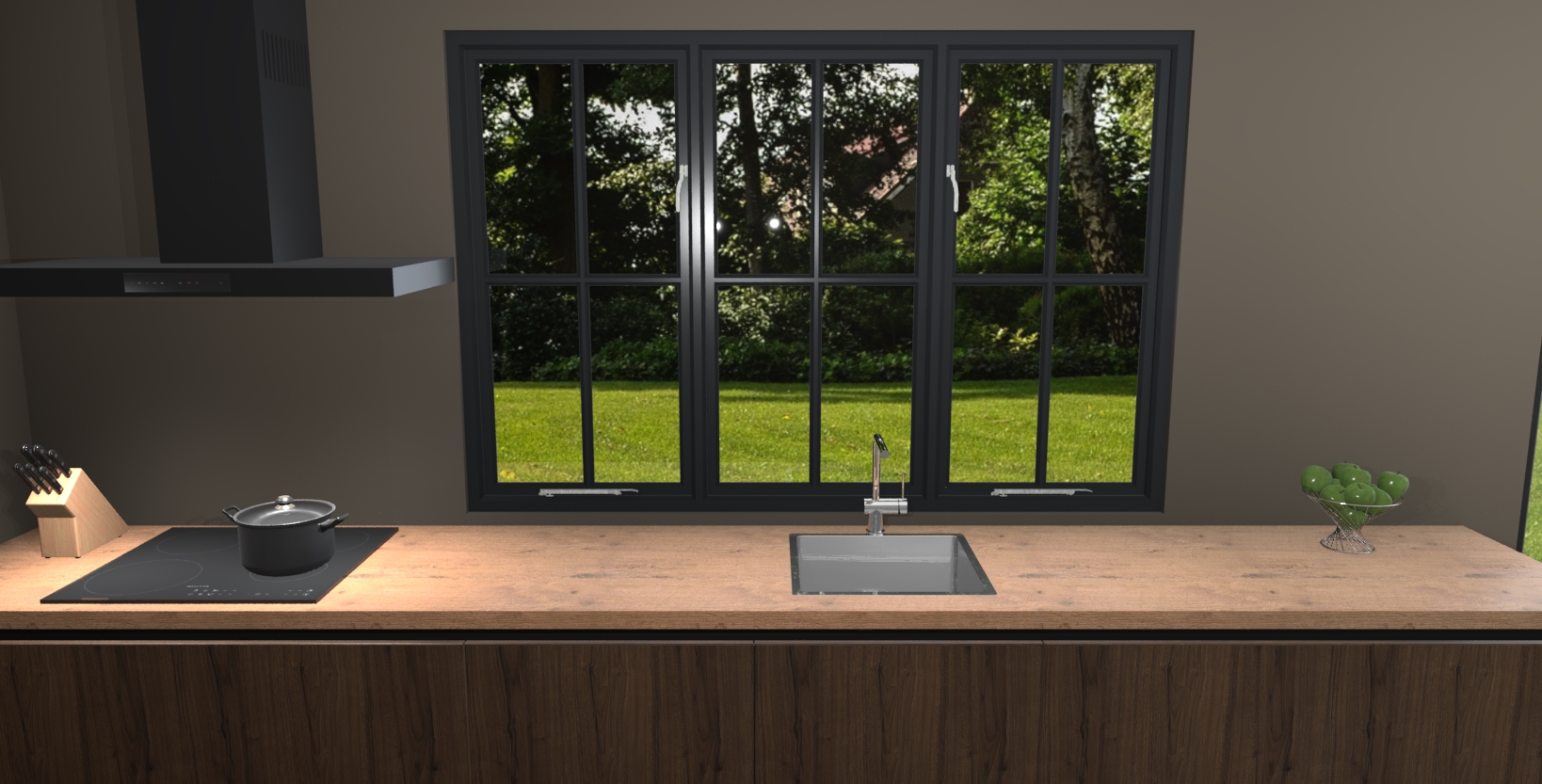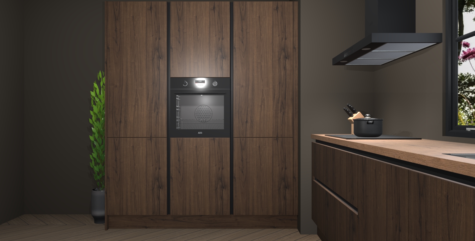 De softclose deuren openen en sluiten is ook heel eenvoudig - geniet van een moeiteloze keukenervaring, zelfs als er kinderen rondlopen. Voor extra gemak bij het plaatsen van uw bestelling bieden we ook een upgrade naar een kookplaat met geïntegreerde afzuiging.