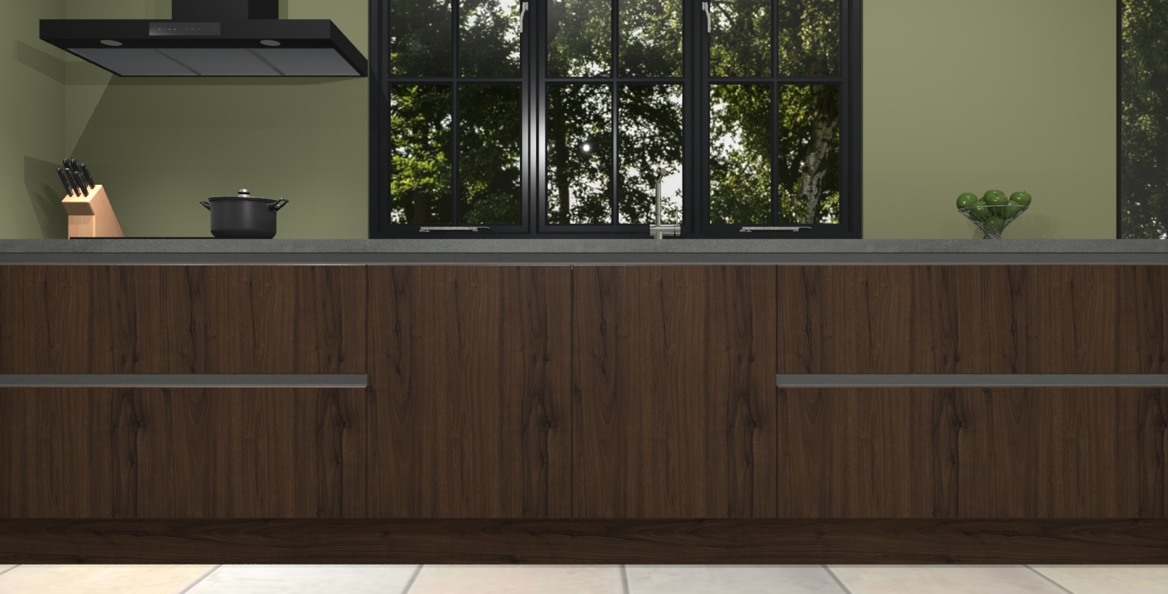 De softclose deuren openen en sluiten is ook heel eenvoudig - geniet van een moeiteloze keukenervaring, zelfs als er kinderen rondlopen. Voor extra gemak bij het plaatsen van uw bestelling bieden we ook een upgrade naar een kookplaat met geïntegreerde afzuiging.