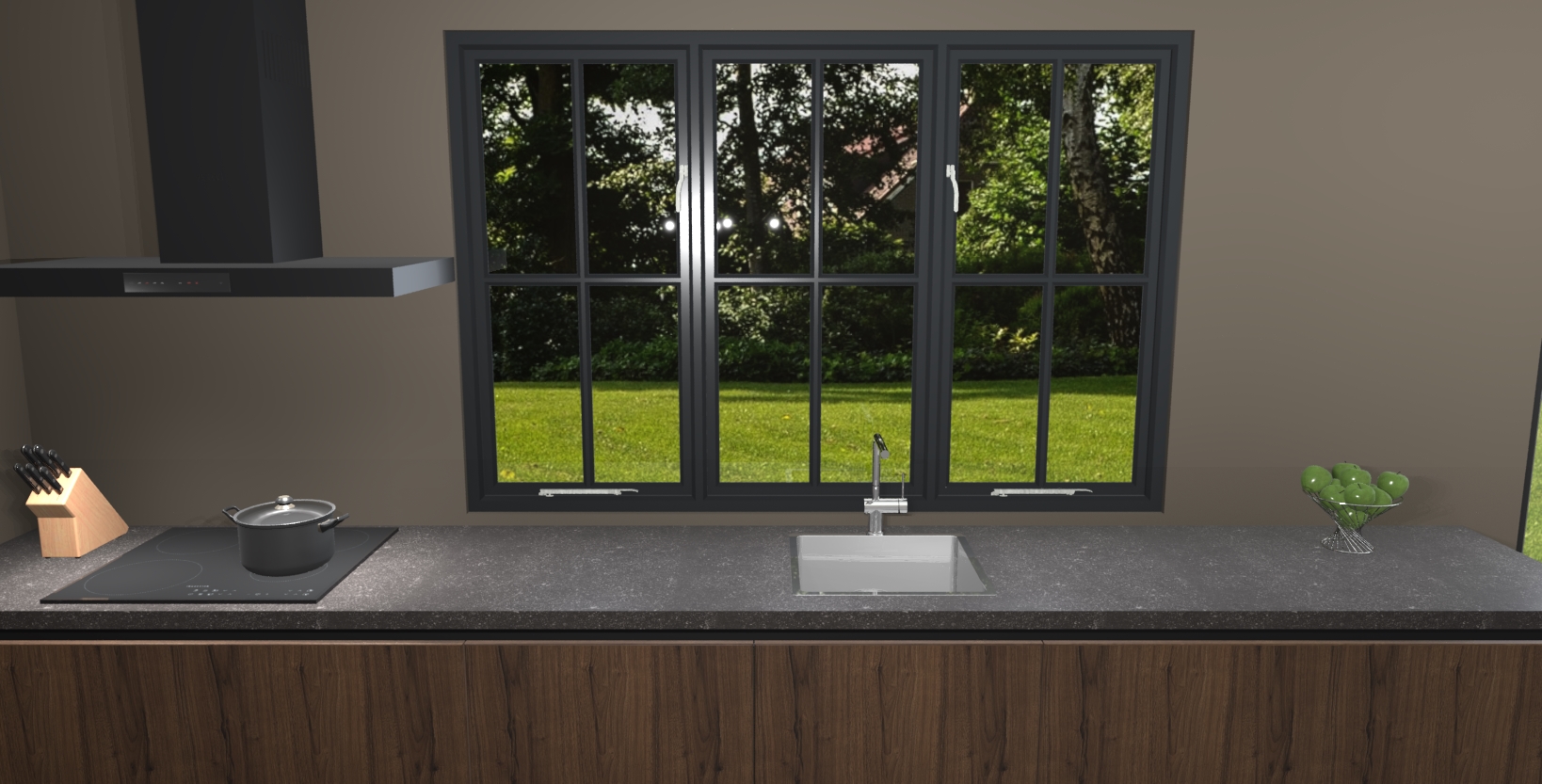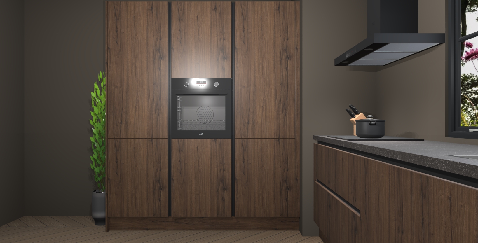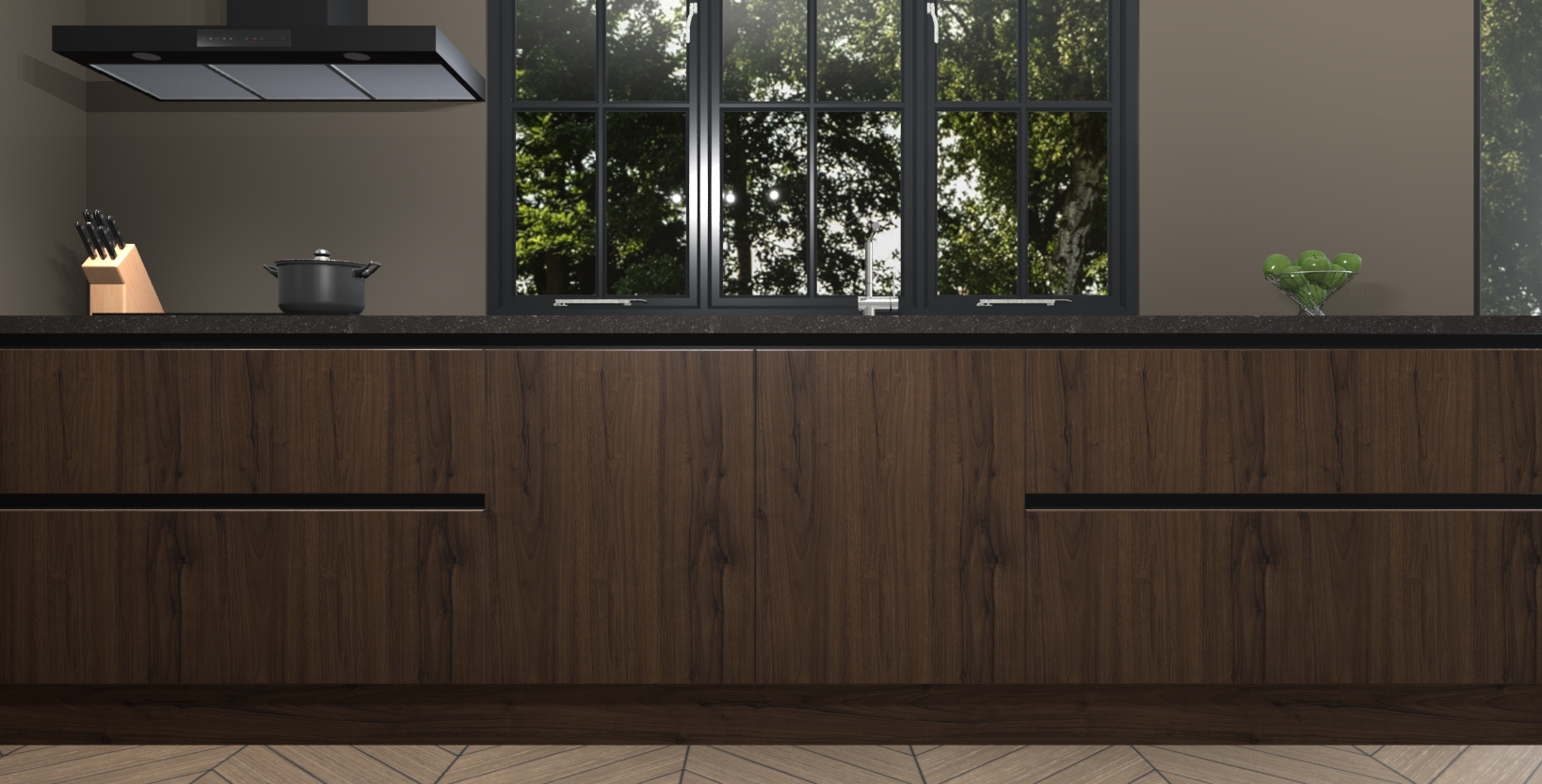 De softclose deuren openen en sluiten is ook heel eenvoudig - geniet van een moeiteloze keukenervaring, zelfs als er kinderen rondlopen. Voor extra gemak bij het plaatsen van uw bestelling bieden we ook een upgrade naar een kookplaat met geïntegreerde afzuiging.