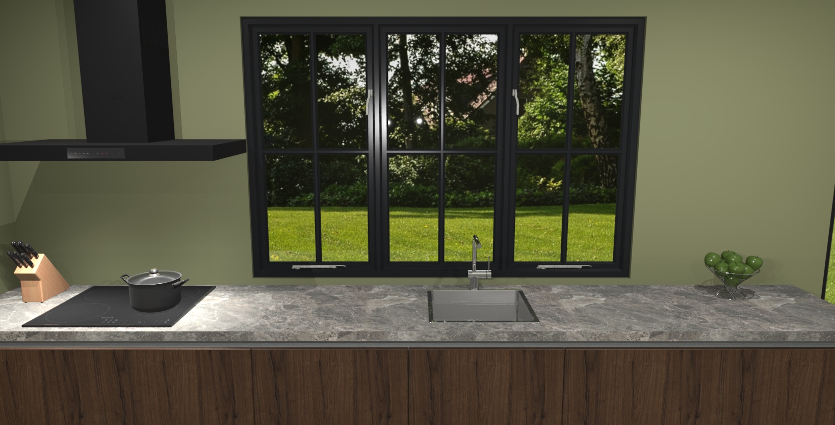 De softclose deuren openen en sluiten is ook heel eenvoudig - geniet van een moeiteloze keukenervaring, zelfs als er kinderen rondlopen. Voor extra gemak bij het plaatsen van uw bestelling bieden we ook een upgrade naar een kookplaat met geïntegreerde afzuiging.