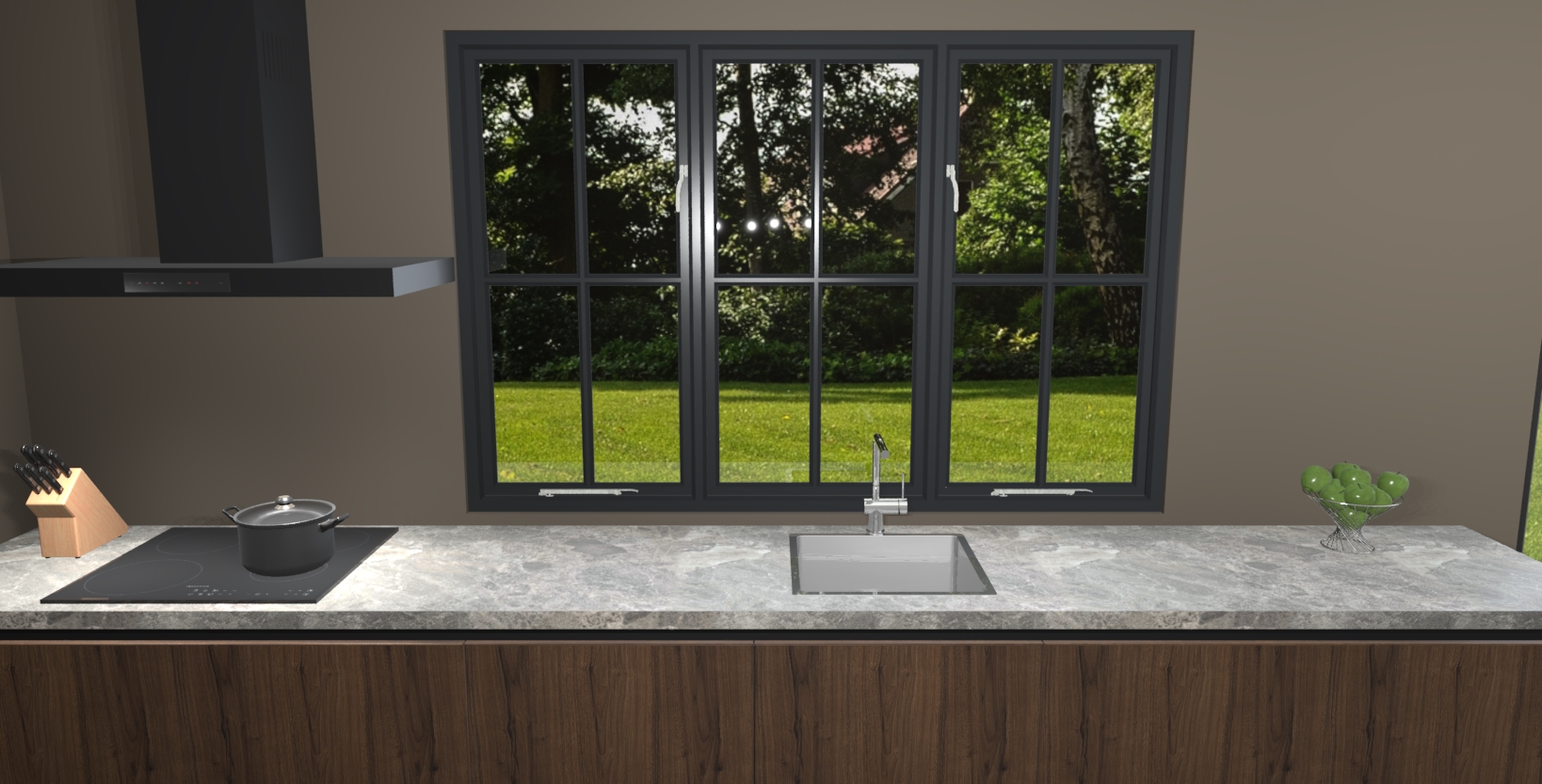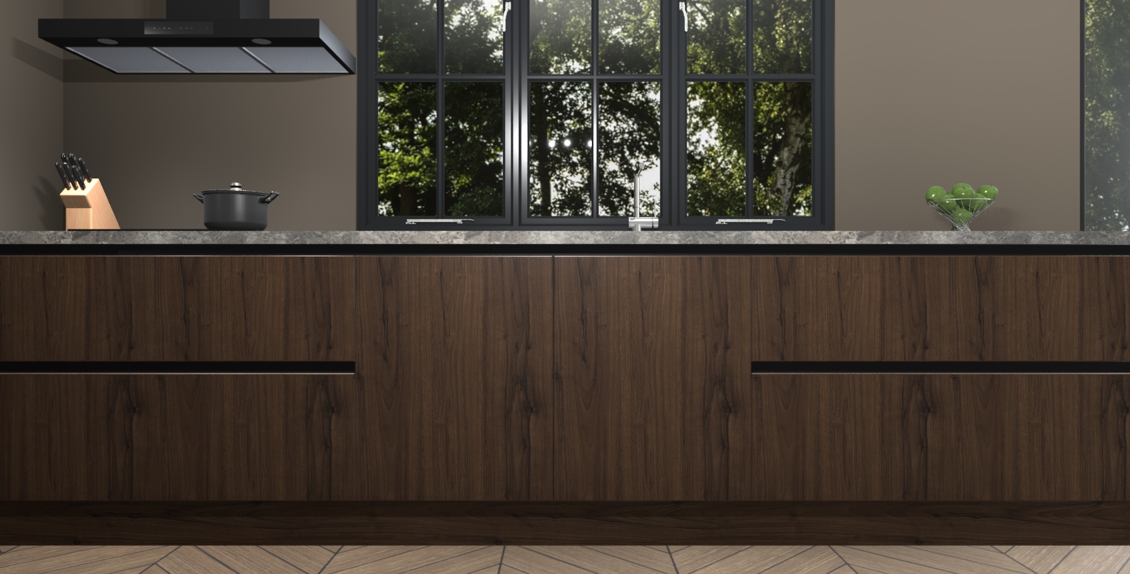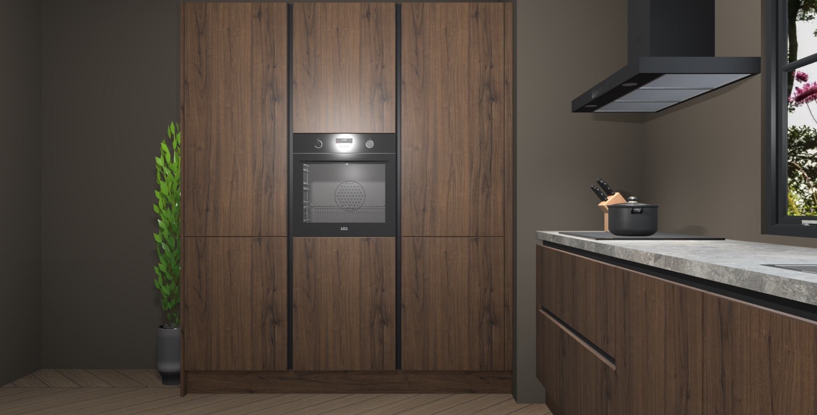 De softclose deuren openen en sluiten is ook heel eenvoudig - geniet van een moeiteloze keukenervaring, zelfs als er kinderen rondlopen. Voor extra gemak bij het plaatsen van uw bestelling bieden we ook een upgrade naar een kookplaat met geïntegreerde afzuiging.