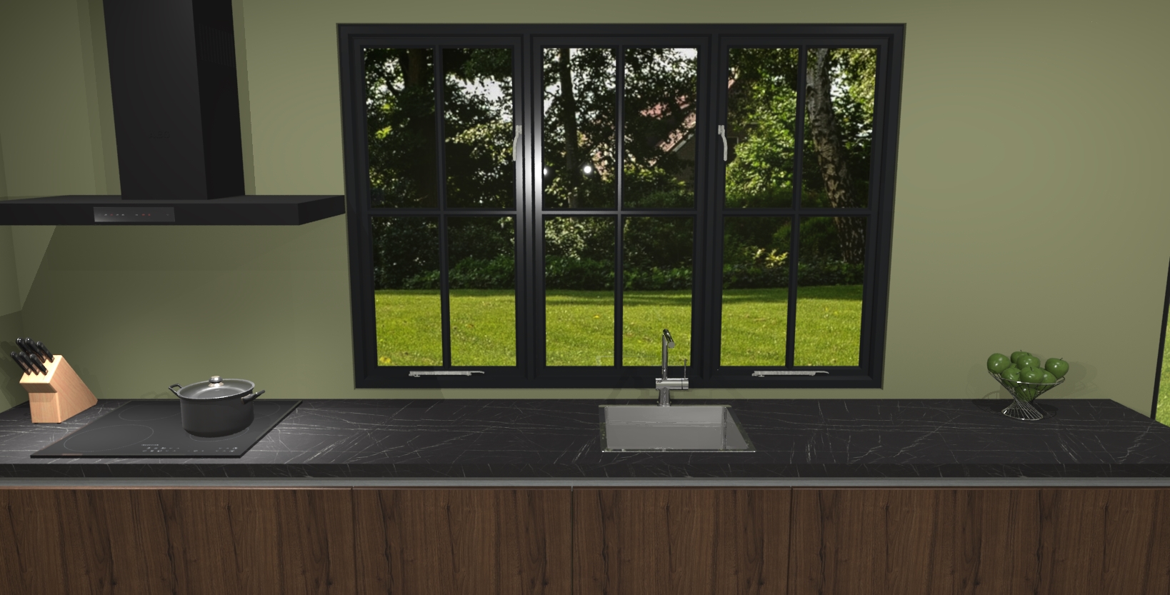 De softclose deuren openen en sluiten is ook heel eenvoudig - geniet van een moeiteloze keukenervaring, zelfs als er kinderen rondlopen. Voor extra gemak bij het plaatsen van uw bestelling bieden we ook een upgrade naar een kookplaat met geïntegreerde afzuiging.