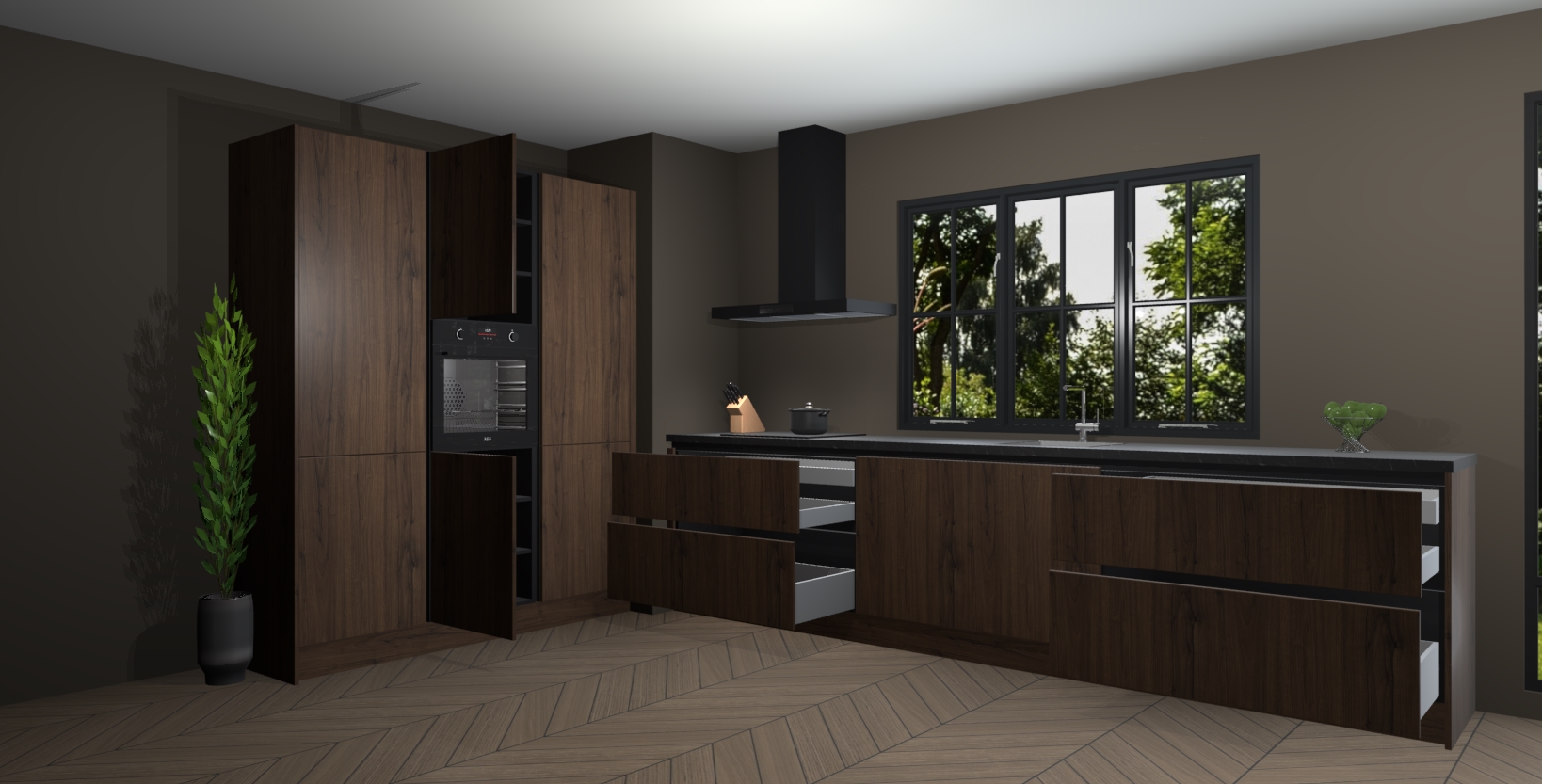 De Noten keuken Marseille, een mooie en verbluffende toevoeging aan uw keuken, is een kunstwerk met zijn luxe design en unieke combinatie van Noten met een houten blad. Geniet van eersteklas vakmanschap dat zorgt voor jarenlange betrouwbaarheid in een strak Europees hedendaags ontwerp.