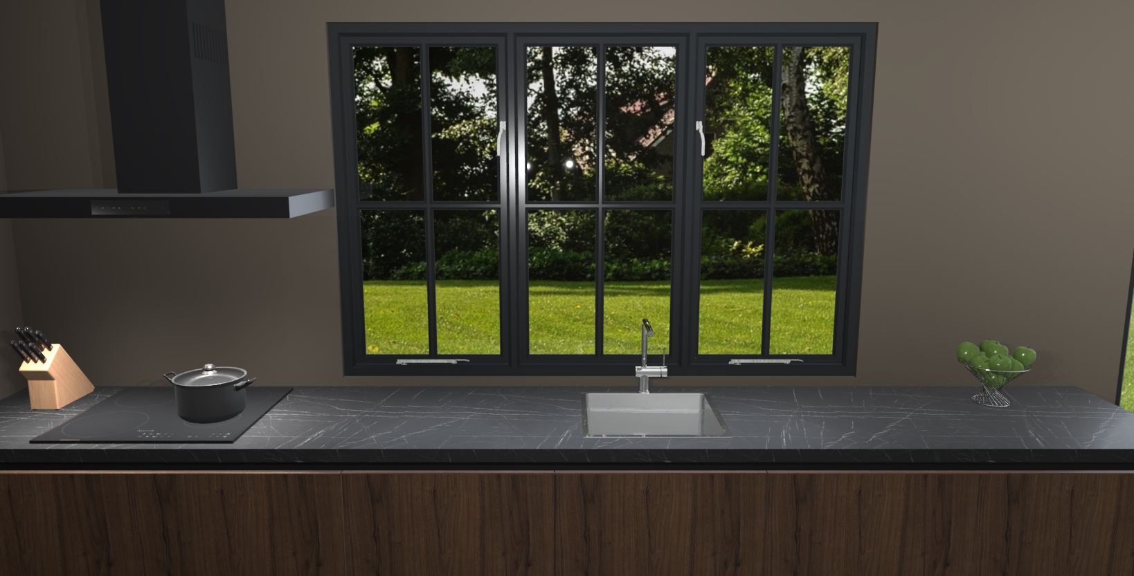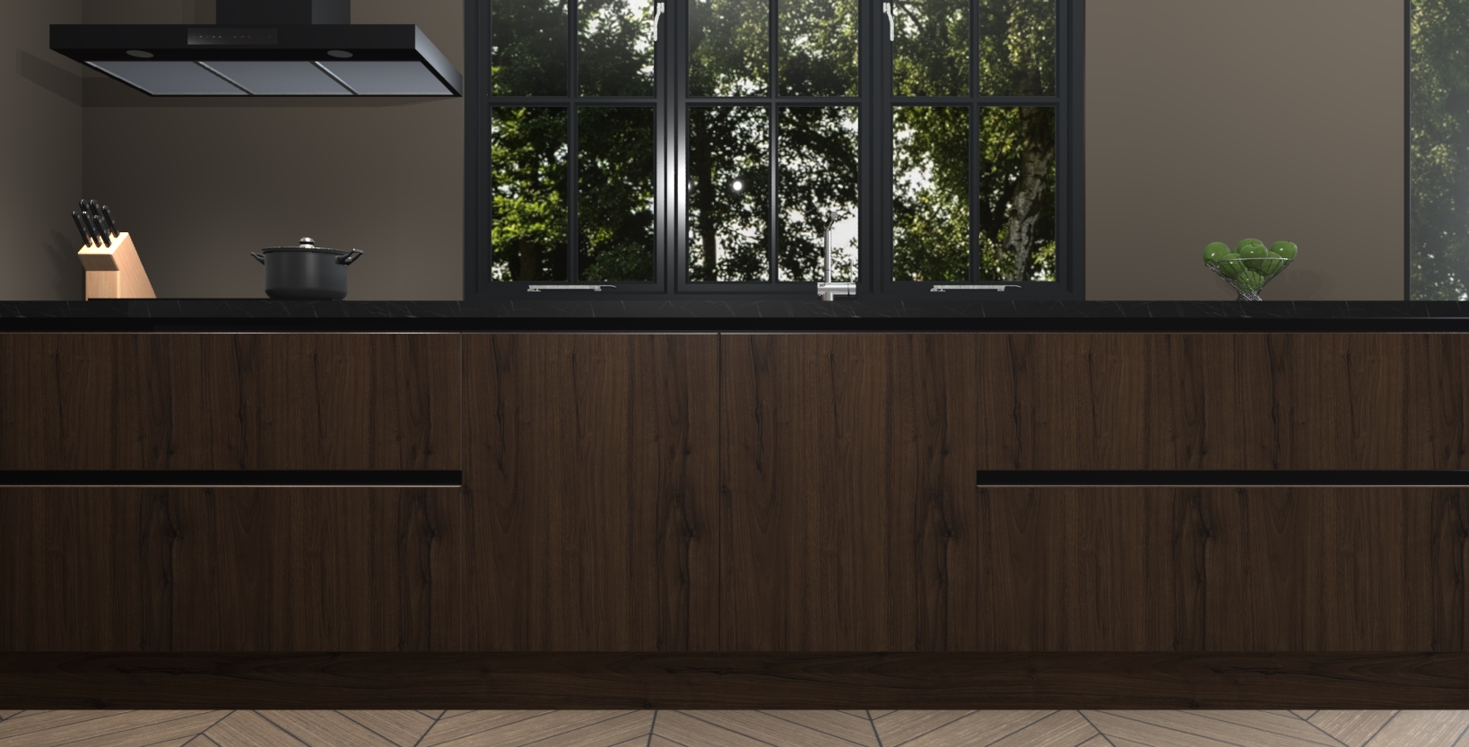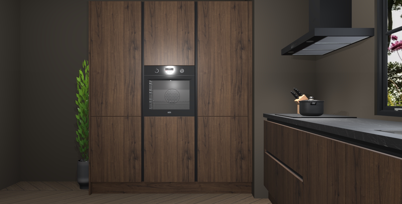 De softclose deuren openen en sluiten is ook heel eenvoudig - geniet van een moeiteloze keukenervaring, zelfs als er kinderen rondlopen. Voor extra gemak bij het plaatsen van uw bestelling bieden we ook een upgrade naar een kookplaat met geïntegreerde afzuiging.