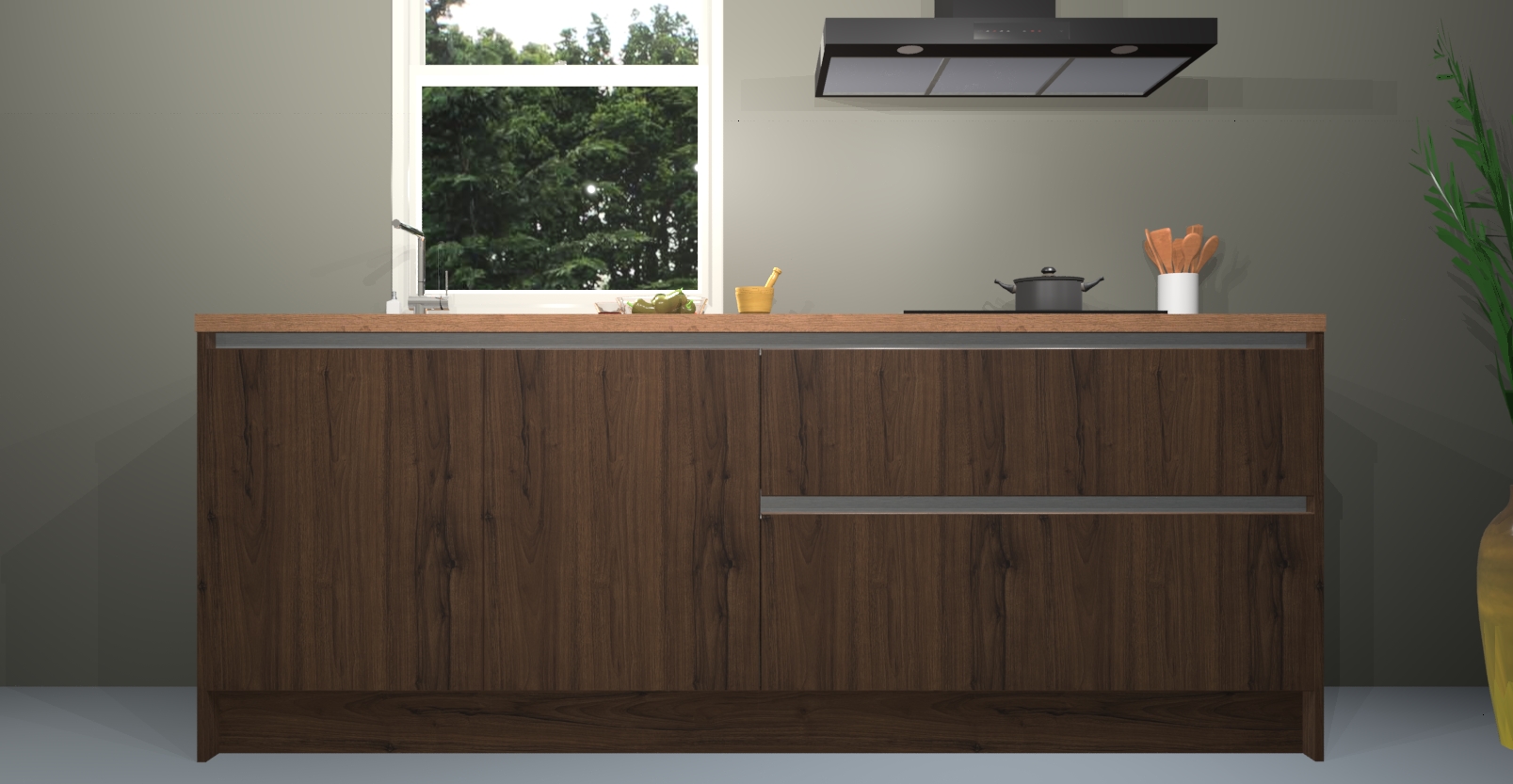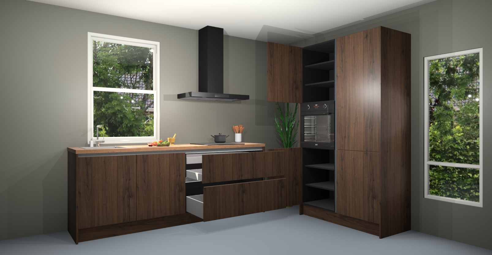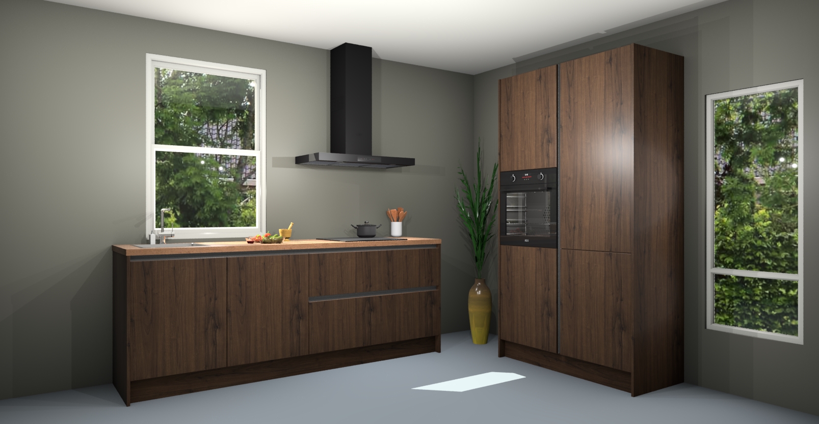 Ervaar het ultieme gevoel van warmte en gezelligheid in uw huis met de luxe Noten greeploze keuken Monaco! Deze ongelooflijk sfeervolle houtlook straalt heerlijke warmte uit en tovert elke keuken om tot een gezellig familiecentrum. Breng uw dromen tot leven met deze unieke keuken, ontworpen voor moeiteloze luxe en functionaliteit.