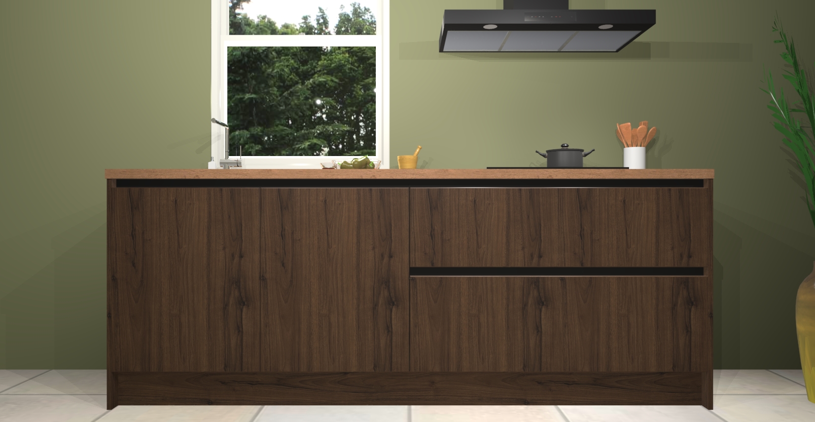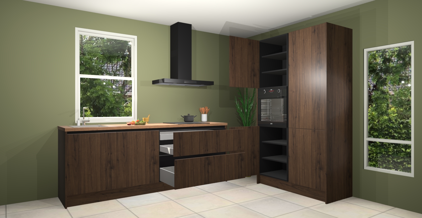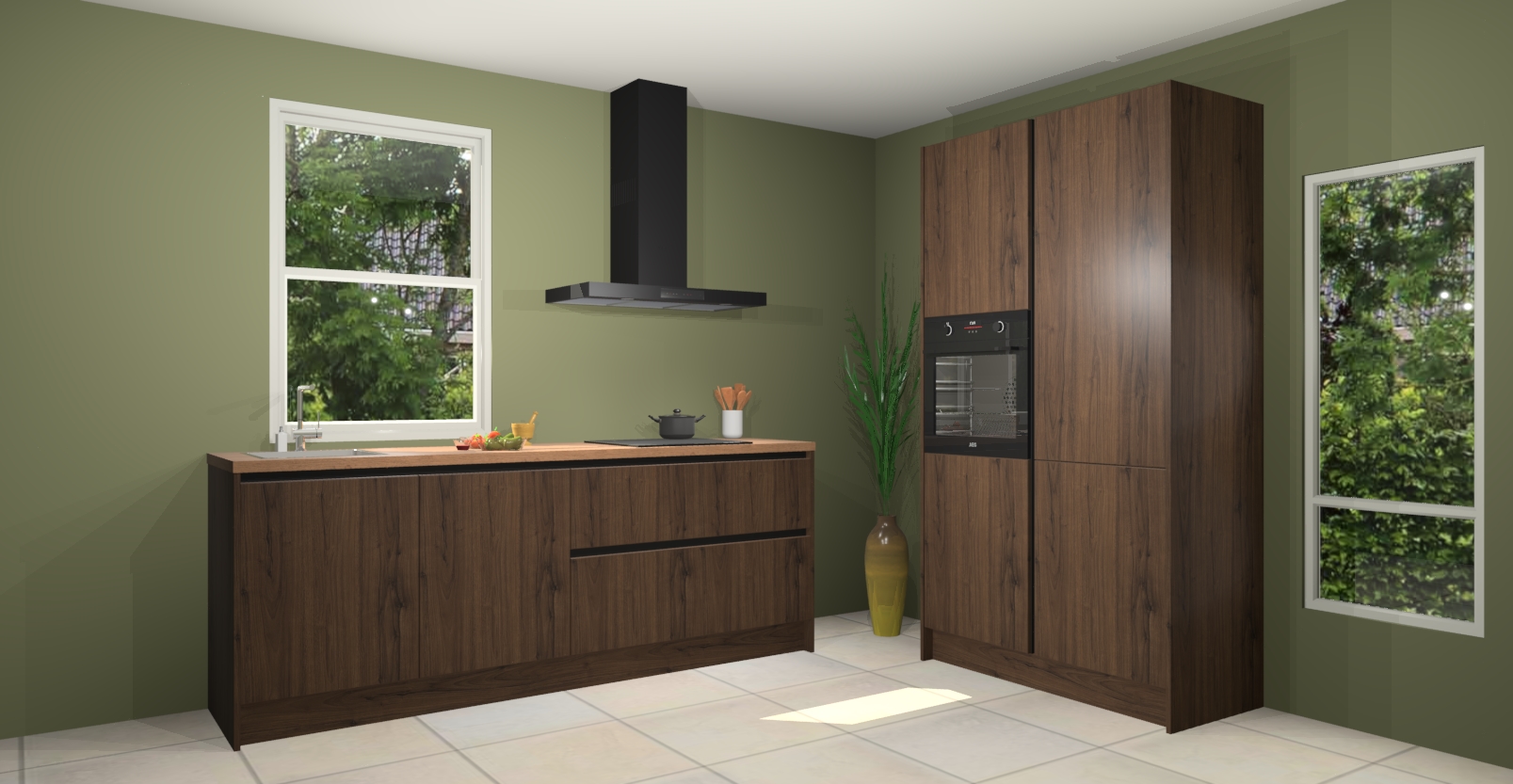 Ervaar het ultieme gevoel van warmte en gezelligheid in uw huis met de luxe Noten greeploze keuken Monaco! Deze ongelooflijk sfeervolle houtlook straalt heerlijke warmte uit en tovert elke keuken om tot een gezellig familiecentrum. Breng uw dromen tot leven met deze unieke keuken, ontworpen voor moeiteloze luxe en functionaliteit.