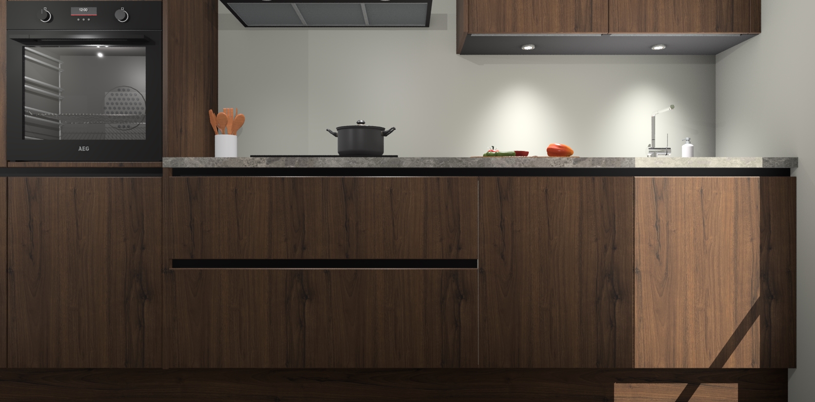 Maak kennis met de nieuwe Noten greeploze Keuken Parijs - de perfecte designcombinatie van gemak, moderne elegantie en ultramodern design. Met een gemakkelijk te reinigen Noten afwerking, zal de slankheid van deze keuken zeker een vleugje luxe toevoegen aan elke ruimte die hij inneemt.