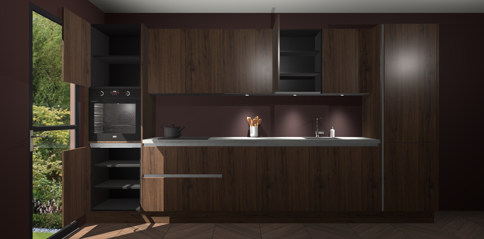 Dit is de perfecte keuken voor wie op zoek is naar een luxueuze stijl zonder zijn portemonnee te legen! Het chique ontwerp van de noten greeploze keuken Wels voegt dat vleugje verfijning toe aan elk huis. Het gemak van voorgemonteerde kasten bespaart u talloze uren tijd en energie, zodat u veel sneller dan verwacht kunt beginnen te genieten van uw prachtige nieuwe keuken. Bovendien bedraagt de levertijd slechts 7 weken.