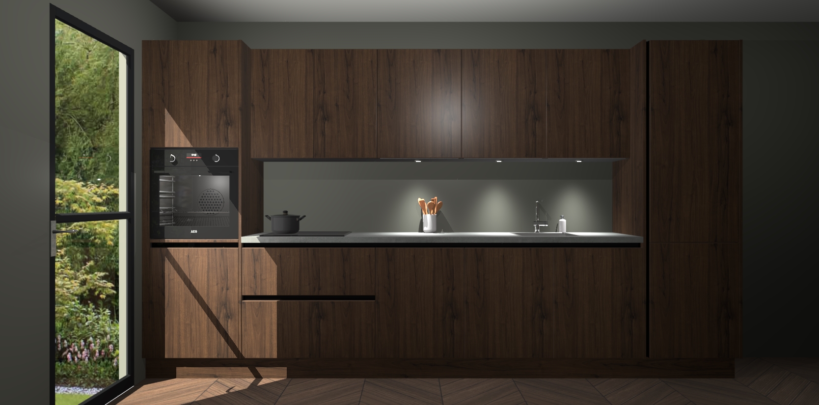 Dit is de perfecte keuken voor wie op zoek is naar een luxueuze stijl zonder zijn portemonnee te legen! Het chique ontwerp van de noten greeploze keuken Wels voegt dat vleugje verfijning toe aan elk huis. Het gemak van voorgemonteerde kasten bespaart u talloze uren tijd en energie, zodat u veel sneller dan verwacht kunt beginnen te genieten van uw prachtige nieuwe keuken. Bovendien bedraagt de levertijd slechts 7 weken.