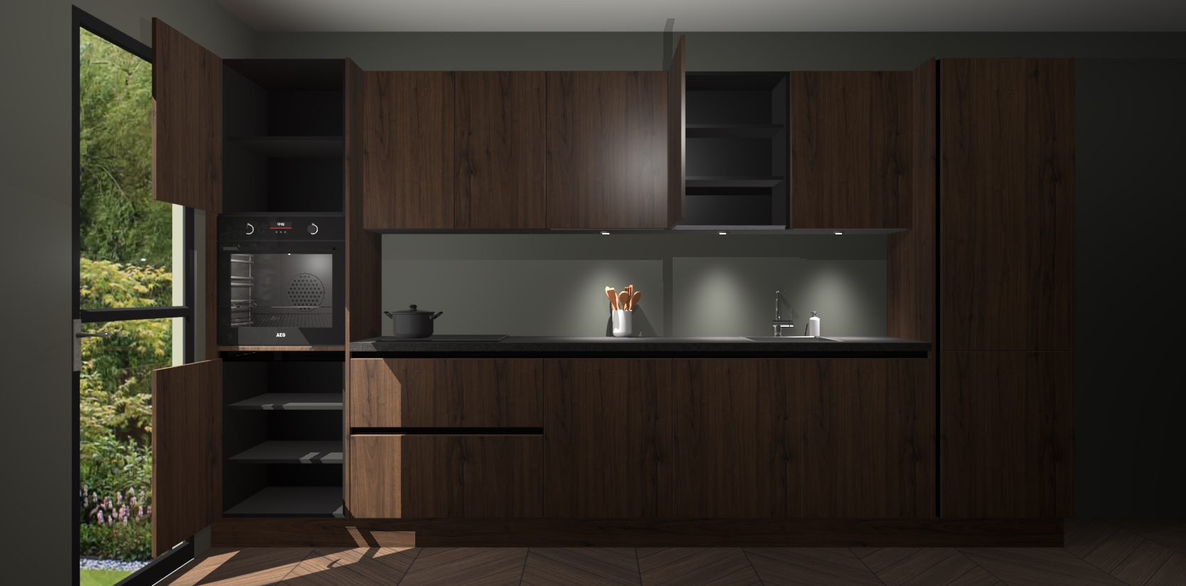Dit is de perfecte keuken voor wie op zoek is naar een luxueuze stijl zonder zijn portemonnee te legen! Het chique ontwerp van de noten greeploze keuken Wels voegt dat vleugje verfijning toe aan elk huis. Het gemak van voorgemonteerde kasten bespaart u talloze uren tijd en energie, zodat u veel sneller dan verwacht kunt beginnen te genieten van uw prachtige nieuwe keuken. Bovendien bedraagt de levertijd slechts 7 weken.