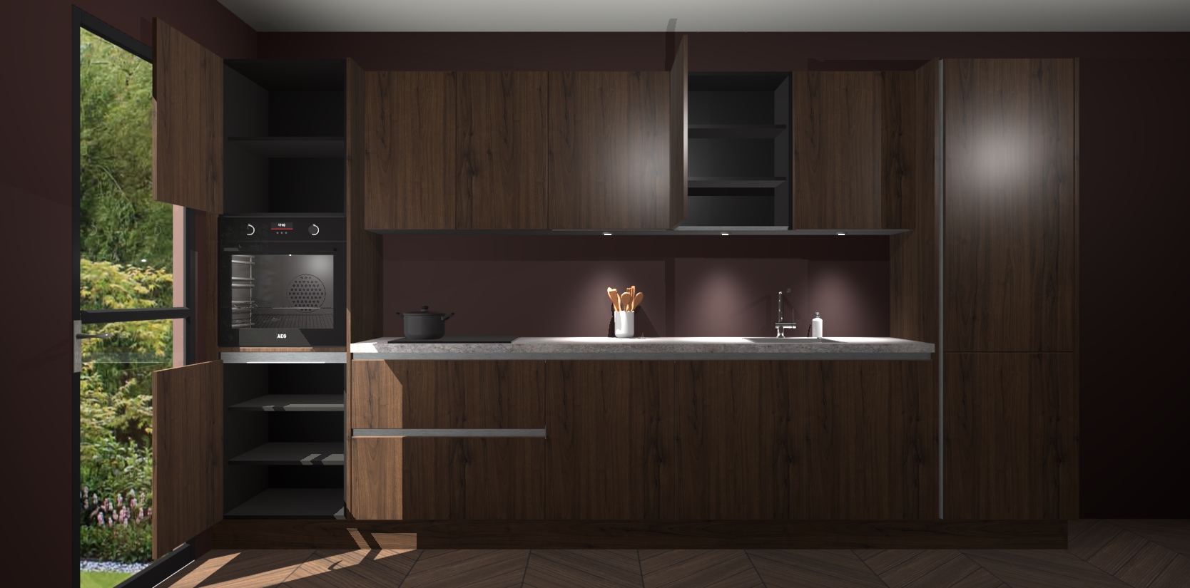 Dit is de perfecte keuken voor wie op zoek is naar een luxueuze stijl zonder zijn portemonnee te legen! Het chique ontwerp van de noten greeploze keuken Wels voegt dat vleugje verfijning toe aan elk huis. Het gemak van voorgemonteerde kasten bespaart u talloze uren tijd en energie, zodat u veel sneller dan verwacht kunt beginnen te genieten van uw prachtige nieuwe keuken. Bovendien bedraagt de levertijd slechts 7 weken.